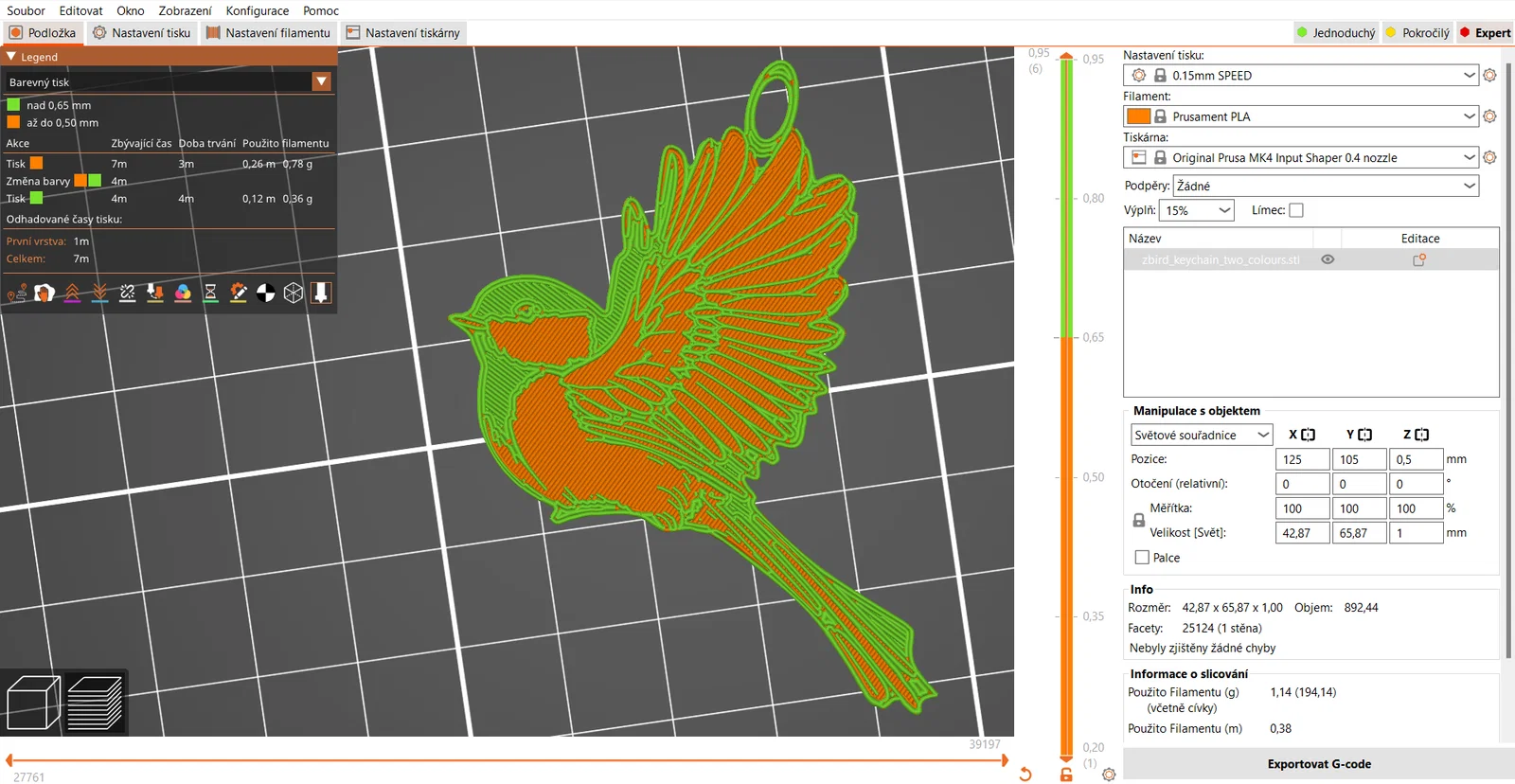 Mẫu móc khóa chú chim nhỏ in 2 màu, in rất nhanh. Chỉ cần filament trắng và đen. Rất phù hợp để tận dụng các phần nhựa thừa (leftovers) còn dư, giúp bạn xử lý vật liệu còn lại hiệu quả.