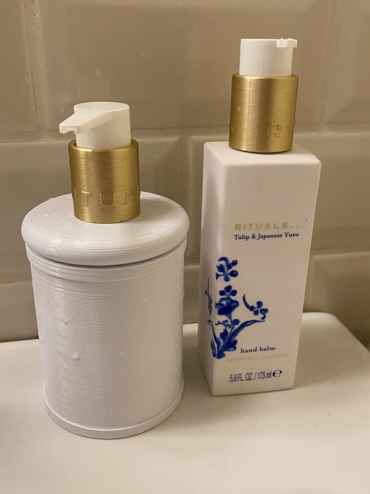 Nếu bạn có một cái bơm đã qua sử dụng từ Rituals, bạn có thể tạo ra chai nạp này để phù hợp với hộp q-tip mà bạn đã làm từ liên kết bên dưới