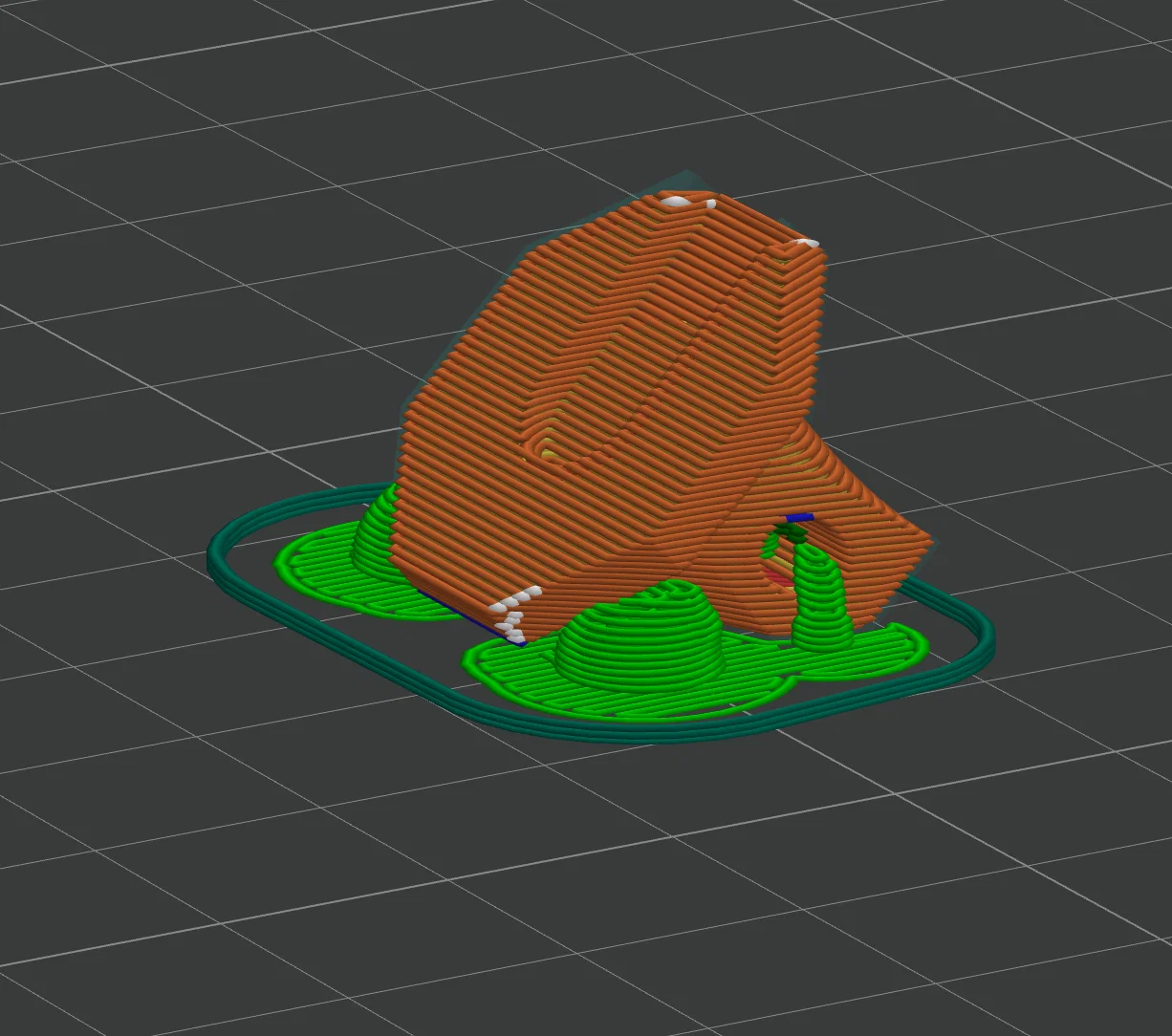 Cách này cần support nhưng sẽ cho thành phẩm cứng hơn nhiều vì các đường layer không vuông góc với hướng lực chính. Xem ảnh chụp màn hình để biết mình đặt hướng như thế nào. - Khoan bỏ chốt bản lề (hinge pin) đang nối phần kẹp nhựa với pát kim loại