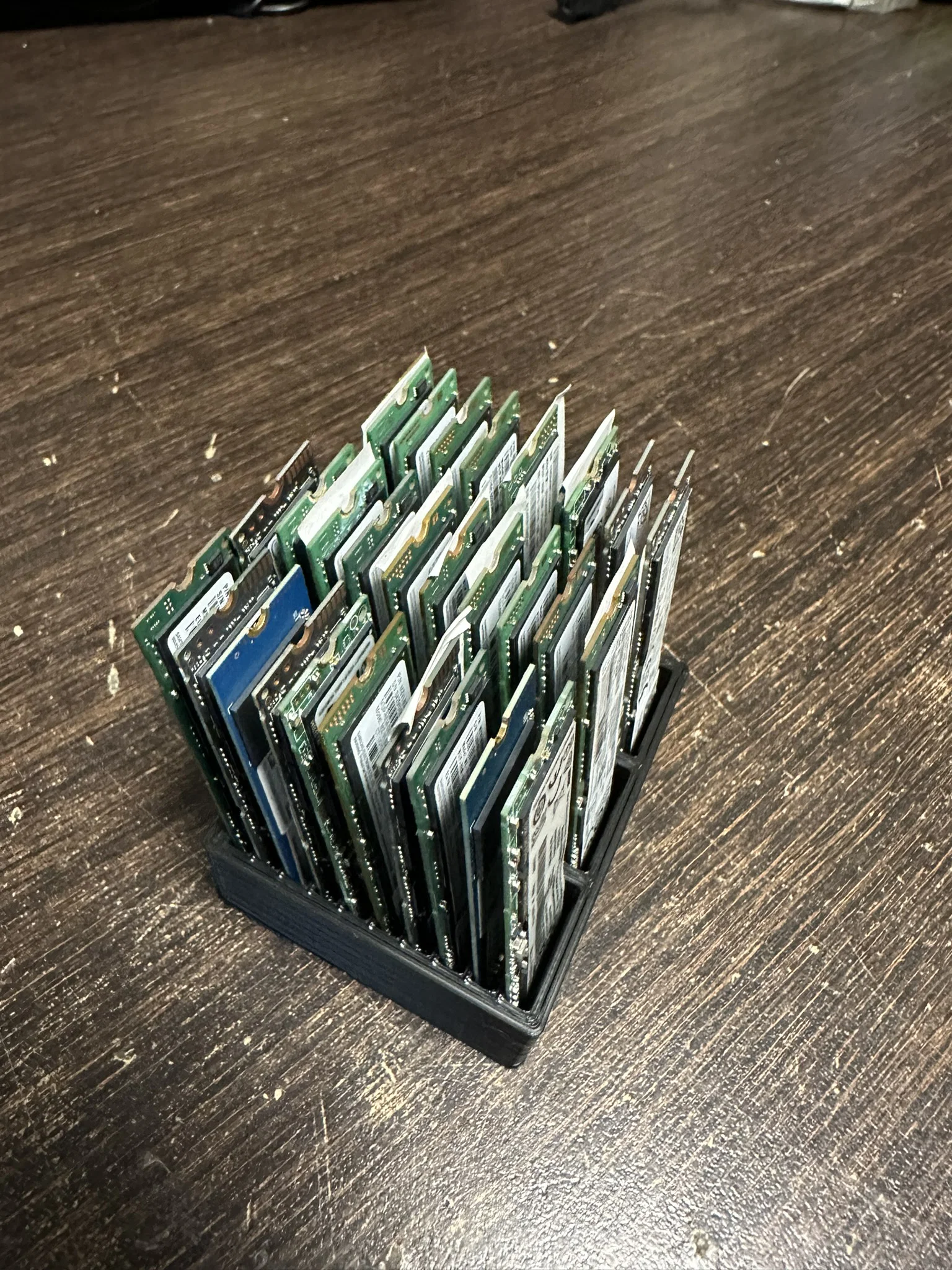 Khay giữ M.2 SSD này được thiết kế để sắp xếp chắc chắn tối đa 30 ổ SSD, mang lại giải pháp lưu trữ gọn gàng và hiệu quả. Khác với thiết kế gốc dành cho 60 SSD, phiên bản này được tối ưu cho các máy in nhỏ hơn, nên dễ tiếp cận hơn và dễ in hơn. Thiết kế ngắn hơn giúp SSD luôn an toàn và dễ lấy, rất hợp cho anh em mê công nghệ hoặc dân kỹ thuật cần một giải pháp lưu trữ thực dụng.