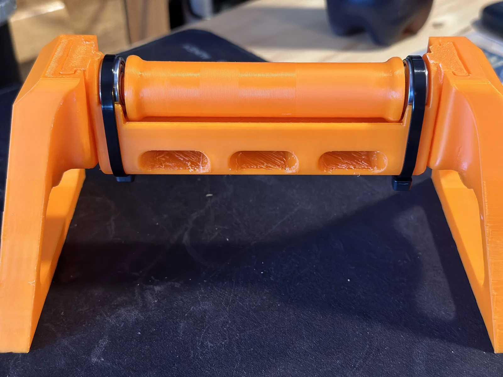 Mẫu giá treo cuộn filament đặt trên nóc cho Creality K1 Max, đã chỉnh sửa từ thiết kế có bearing roller để lắp vừa riser của Creality Ultimate Upgrade Kit. Có ghi chú in, supports/raft và danh sách hardware cần thiết.