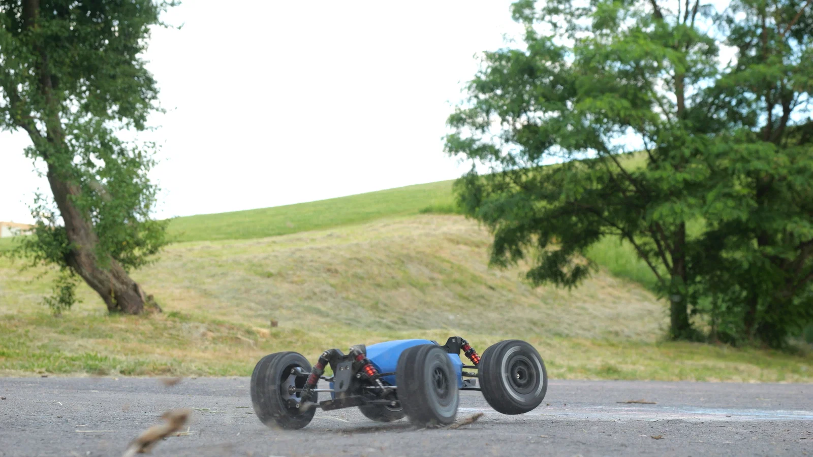Vì Robak có tiềm năng chạy tốc độ cao, mình cứ đẩy nó nhanh hơn nữa. Lúc đo top speed, mình để ý có vấn đề về độ ổn định. Chạy địa hình xấu có rễ cây, xe hay bị nảy làm bánh mất tiếp xúc, dẫn tới mất traction hoàn toàn và lái rất tệ. Vào cua tốc độ cao cũng khó vì xe có trọng tâm (CoG) cao và roll center thấp, khiến nó có xu hướng lật—điều mà thường không thấy ở RC car thương mại. Rõ ràng là có gì đó không ổn. Tiếc cho một chiếc xe nhanh mà cảm giác lái lại như xe buýt đời cũ.
