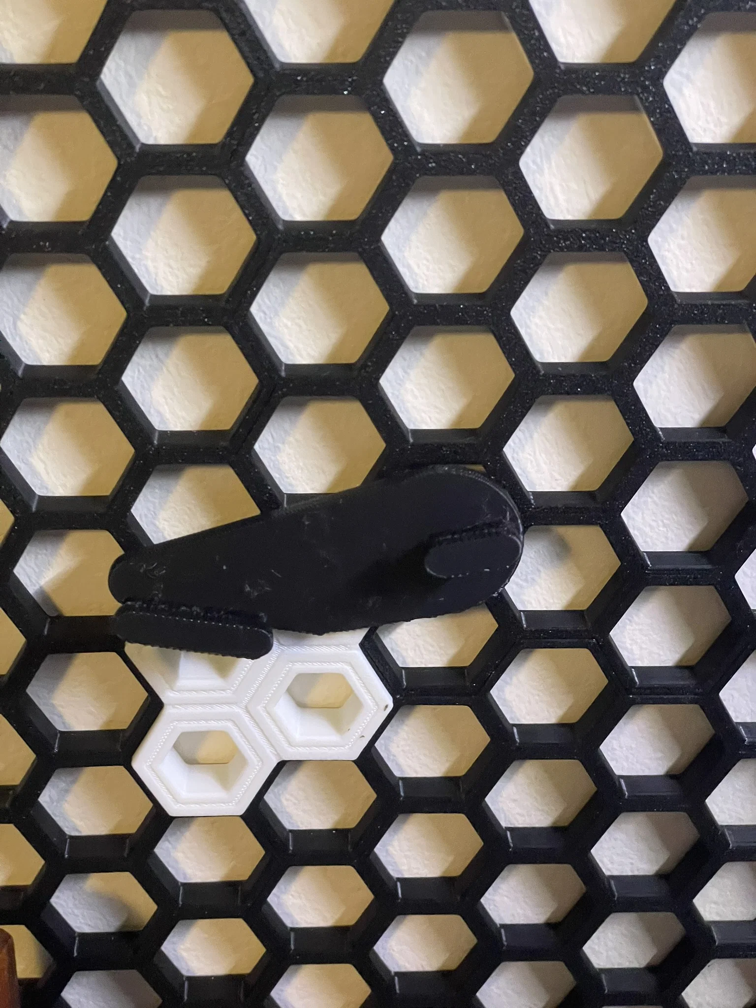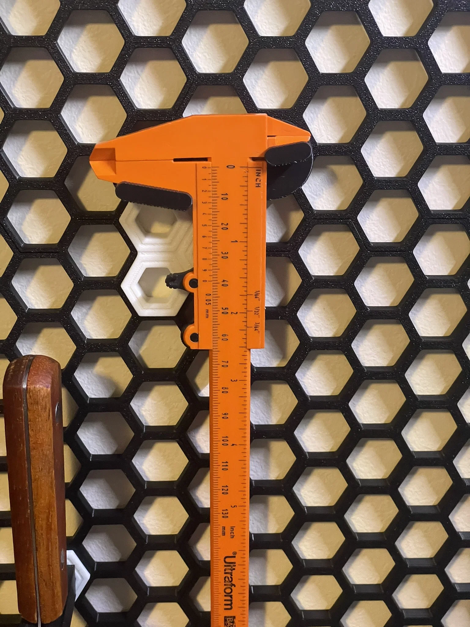 Giá đỡ thước kẹp cho hệ Honeycomb Storage Wall (HSW). Thiết kế này chỉ vừa với caliper có bề rộng 25mm; nếu caliper rộng/hẹp hơn thì sẽ không trượt vào được. Gợi ý in: nozzle 0.4, layer 0.2, 3 walls, infill 15%, cần supports.