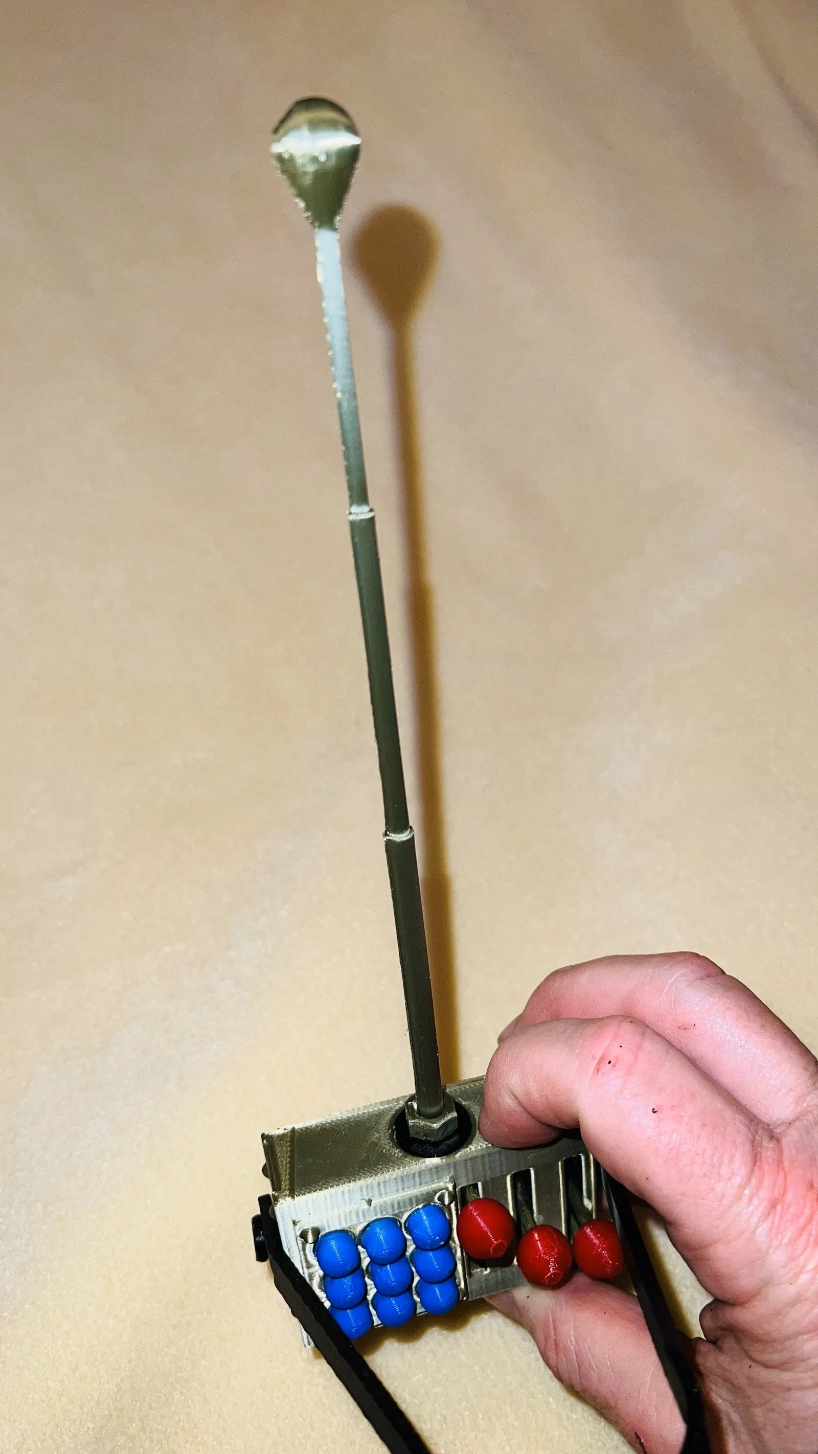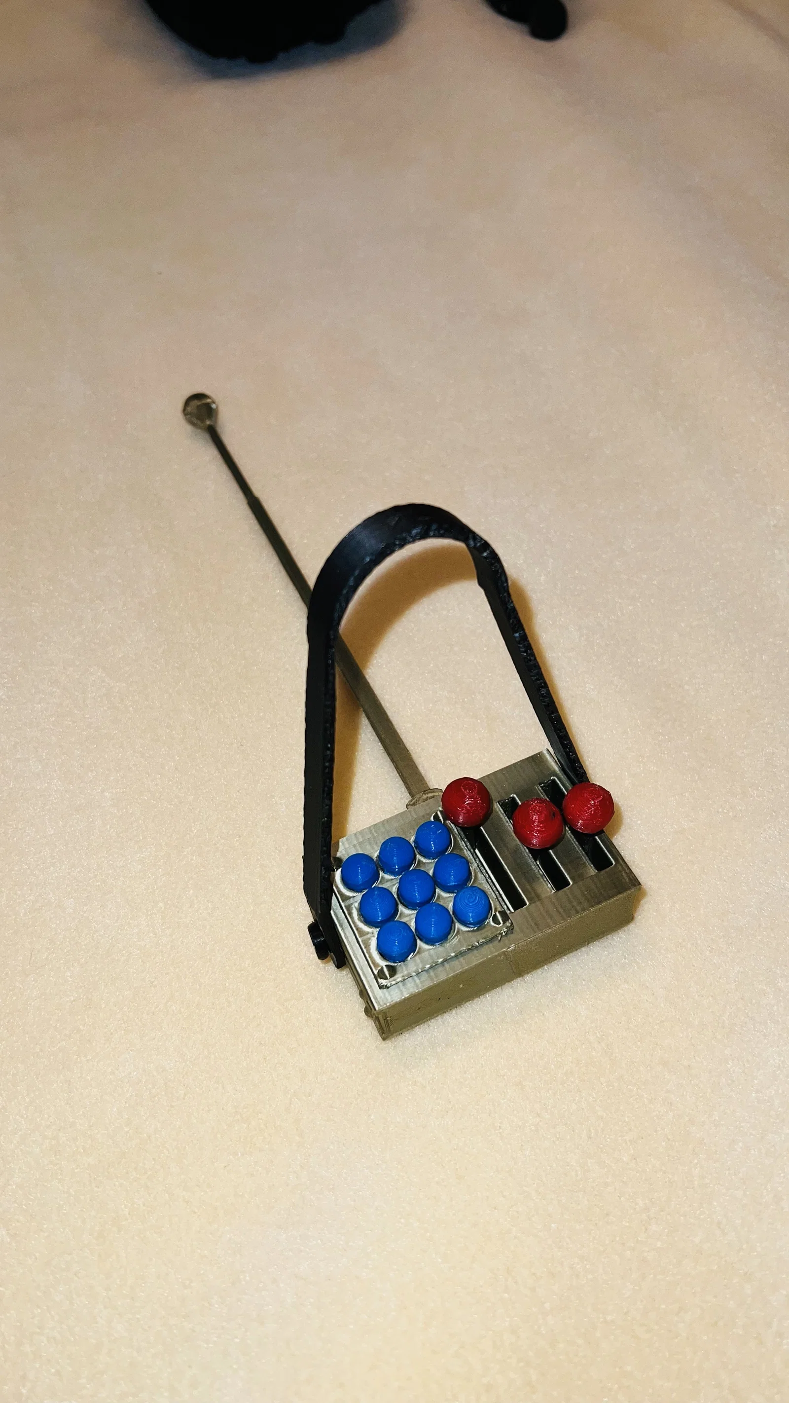 - In 3 cái cần gạt màu bạc. Một đầu gắn vào núm đỏ, đầu còn lại gắn vào mặt trước của remote.