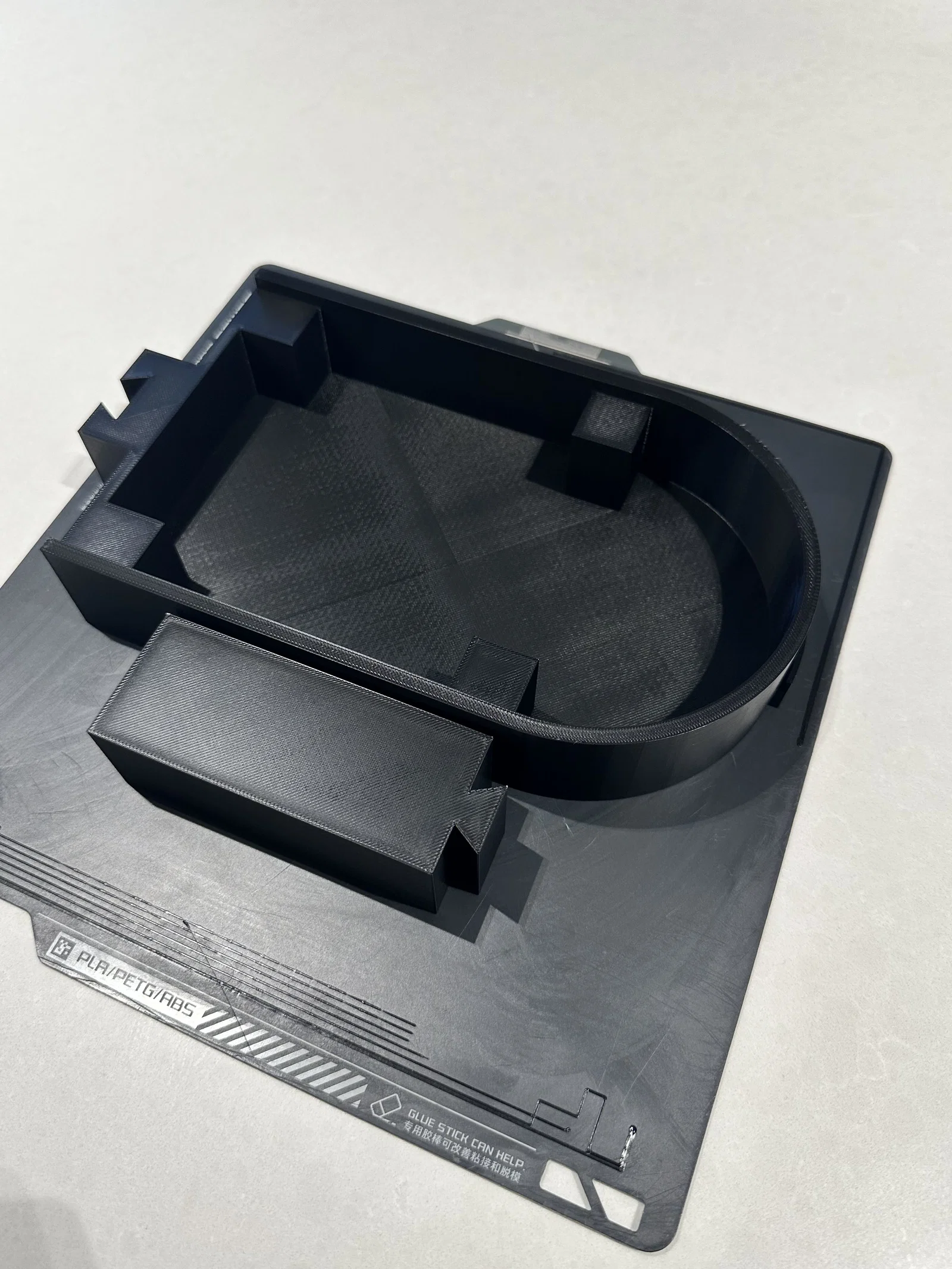 Cập nhật nhẹ ở v11: giảm phần gờ (lip) của chỗ giữ khay xuống 2mm để khay hứng nước nhỏ giọt nằm phẳng.