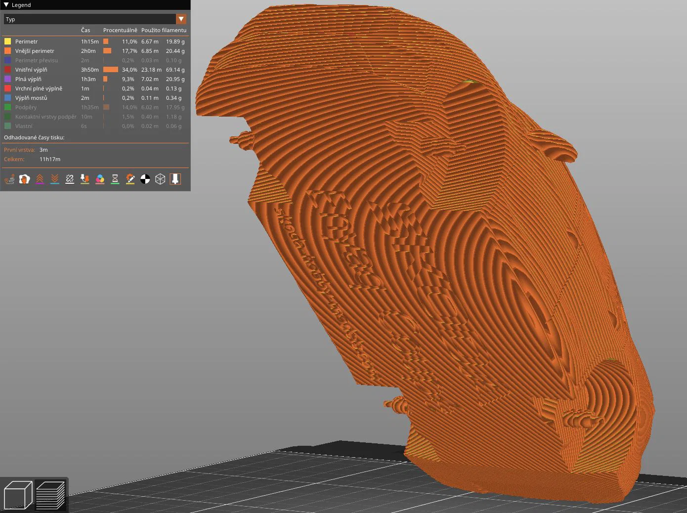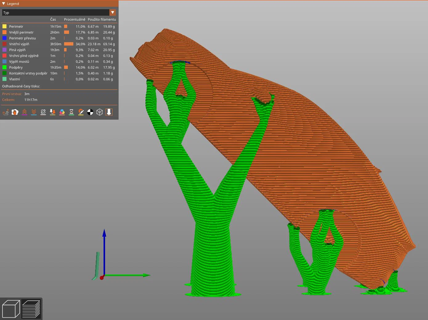 Mẫu đã được căn sẵn hướng để in với organic supports, nhằm giảm độ lộ của các lớp (layer). Xem file 3MF đi kèm nếu bạn muốn tự slice mẫu, thay vì dùng các file G-code đã được upload.