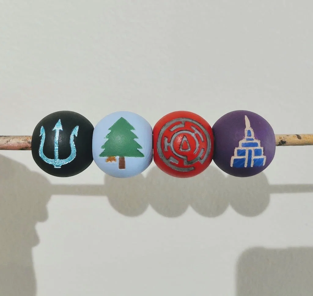 Một bộ hạt (beads) Camp Half-Blood cỡ lớn từ series Percy Jackson. Đây là 4 hạt mà Percy có ở cuối loạt Percy Jackson and the Olympians: