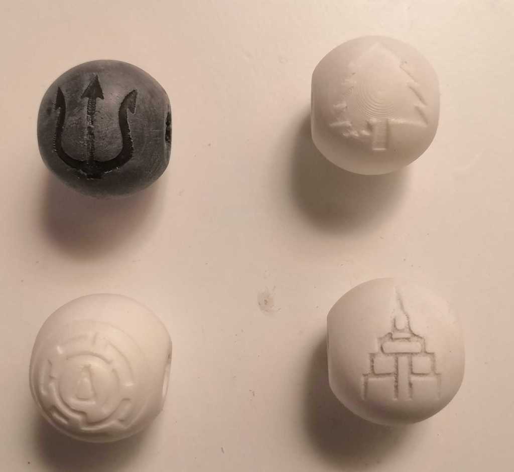 1 bản của mỗi trong 4 phần mặt trên của hạt (trident, tree, maze và empire state building) và 4 phần mặt dưới