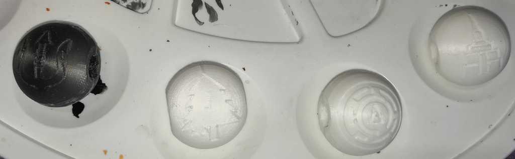 Từ đó thì việc sơn hạt sẽ khá dễ, chỉ cần tô thêm màu thứ hai vào các phần lõm (recesses). Kế hoạch phối màu của mình là: