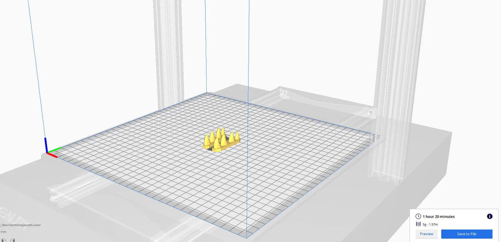Mẫu mặt nạ Nevrean realistic dành cho costume/cosplay, tách nhiều phần gồm bộ hàm, hàm trên và hàm dưới. Cần in kèm supports (trừ file “teeth”). Phù hợp bàn in 300x300x400mm.