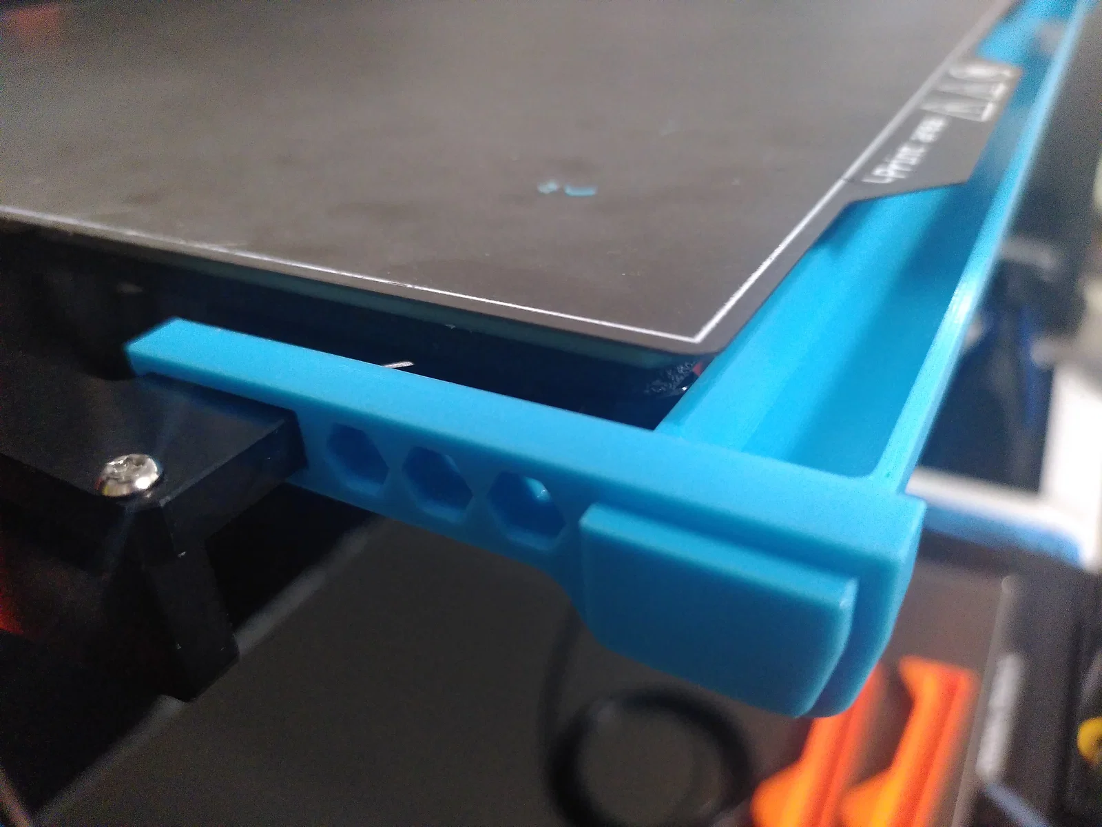 Cái tray sẽ bắc ngang qua print bed và được giữ lại bằng hai cái kẹp.