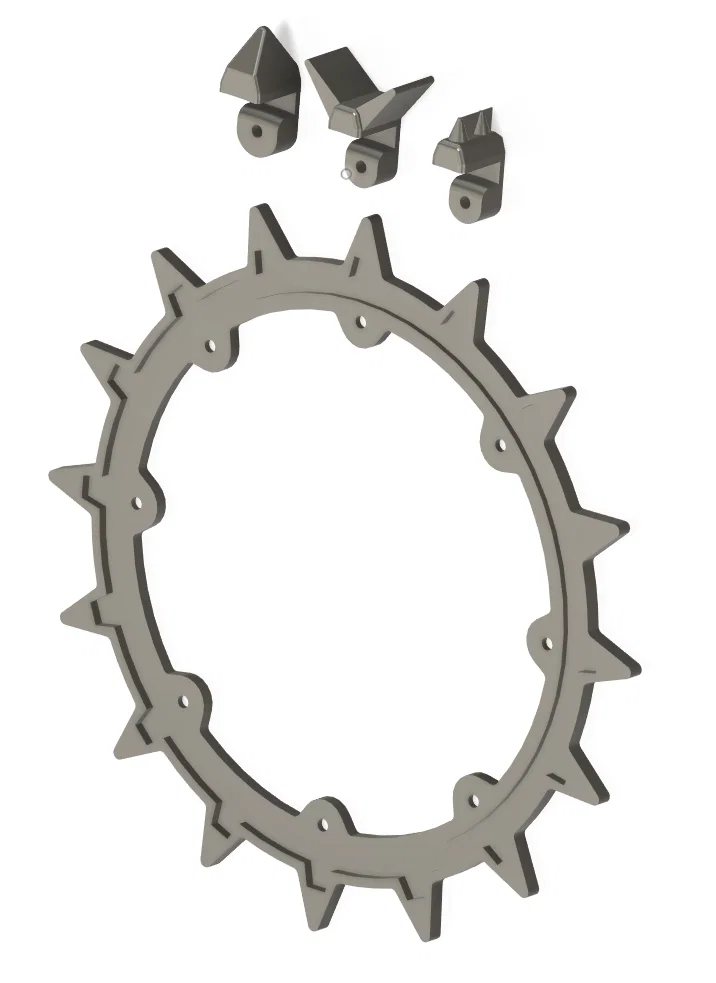 Mấy cái spike này là một mẫu làm nhanh, kẹp (clip) vô các gai ở mép trong của bánh xe zin. Về cơ bản chỉ cần kẹp chụp lên các gai bên trong trên mỗi bánh là sẽ thành 8 gai kéo dài cho mỗi bánh.