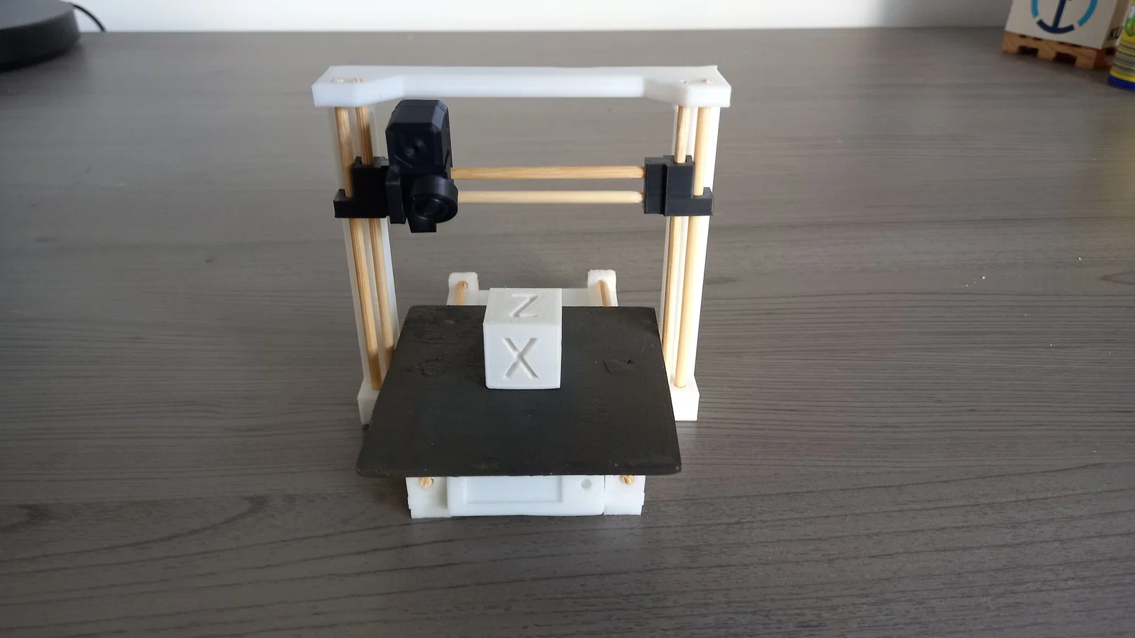 Mẫu “Mini 3D printer” là một máy in 3D mini (không hoạt động), lấy cảm hứng từ Prusa MK3. File dùng để in làm mô hình/trang trí, kèm danh sách parts và hướng dẫn lắp ráp bằng que xiên 3mm.