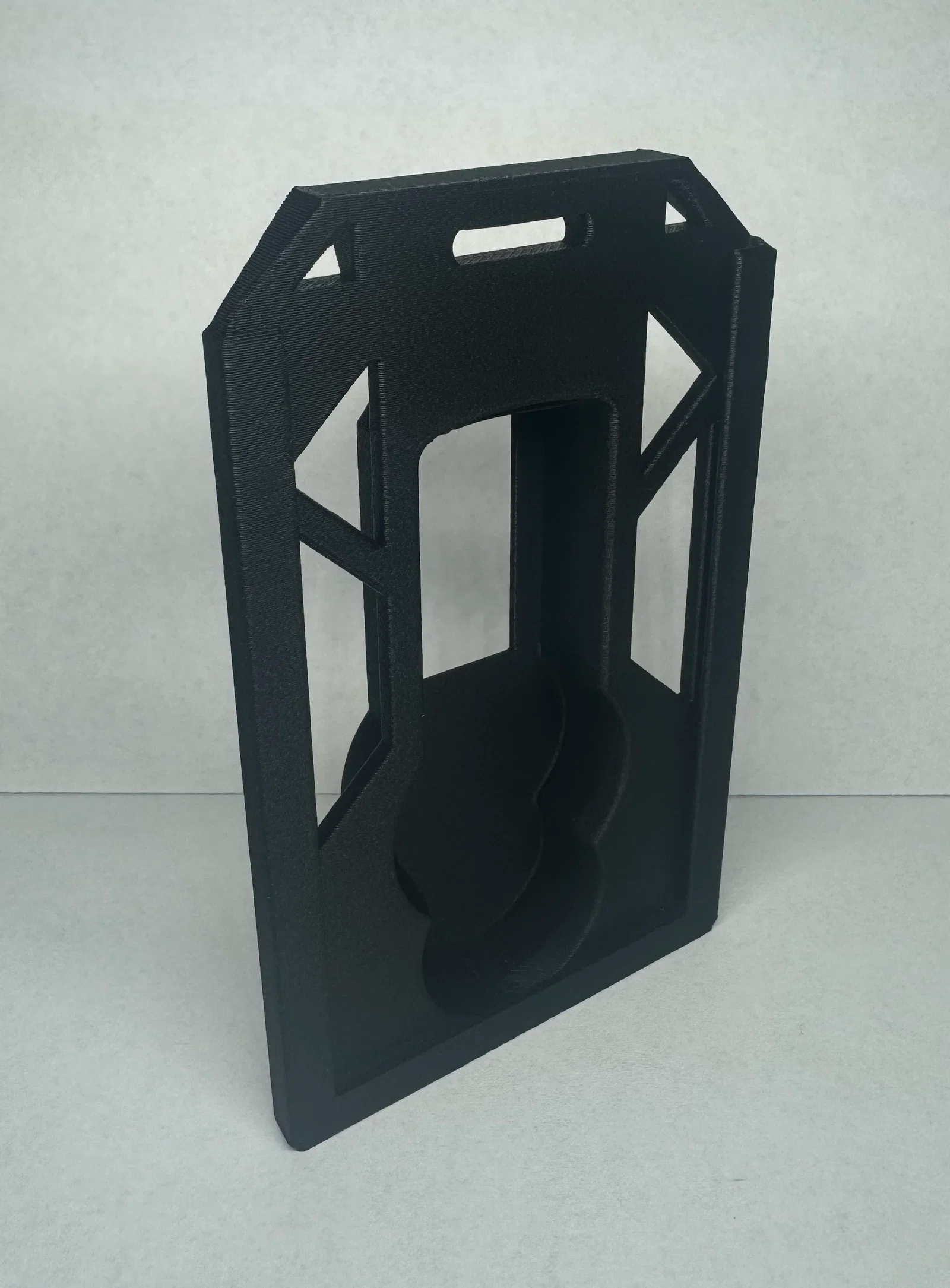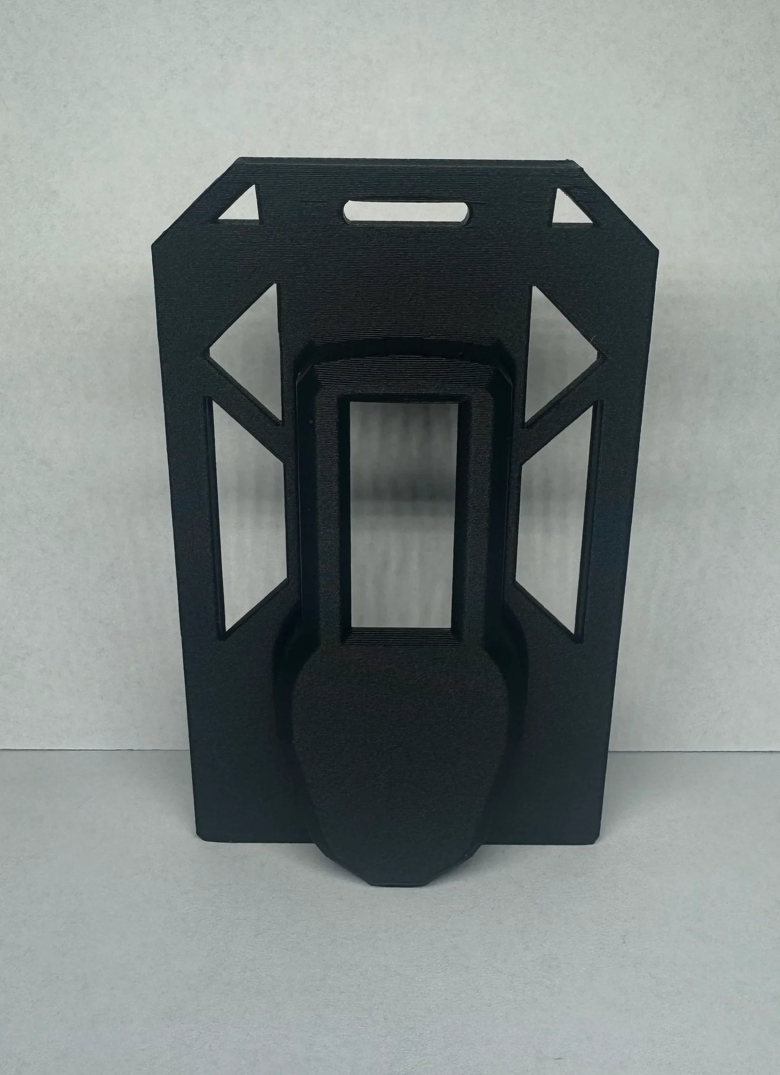 Mình in mẫu này bằng Bambu Lab black carbon fiber PLA, ra bề mặt matte nhìn rất đã, mà còn nhẹ và cứng cáp — đúng như mấy tấm hình bạn thấy.