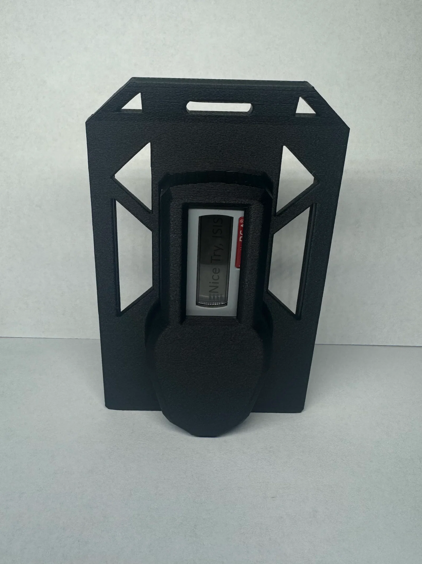 Bản remix giá đỡ RSA token và thẻ badge với thiết kế gọn, đẹp, có khoét rỗng giảm trọng lượng. Tương thích kẹp thẻ phổ thông (nút bấm/nhựa), có bản khe đôi cho 2 thẻ. In ngon với PLA sợi carbon.