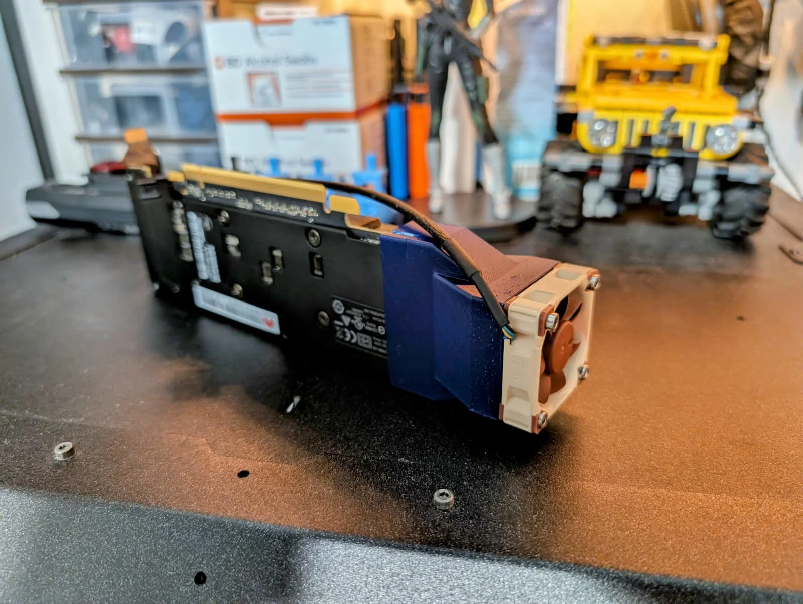Đây là mẫu Air Duct Attachment thiết kế riêng cho GPU, cho phép gắn quạt 40mm ở một đầu GPU để đẩy luồng gió đủ mạnh đi xuyên qua phần silicon, nhờ đó có thể giảm đáng kể nhiệt độ khi hoạt động. Mình thiết kế dựa trên quạt Noctua PVM 4x10, nhưng cũng nên vừa với các loại quạt 4cm khác. Khuyến nghị in bằng ASA hoặc ABS để chịu nhiệt tốt hơn.