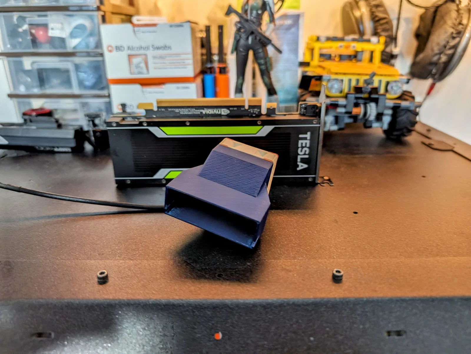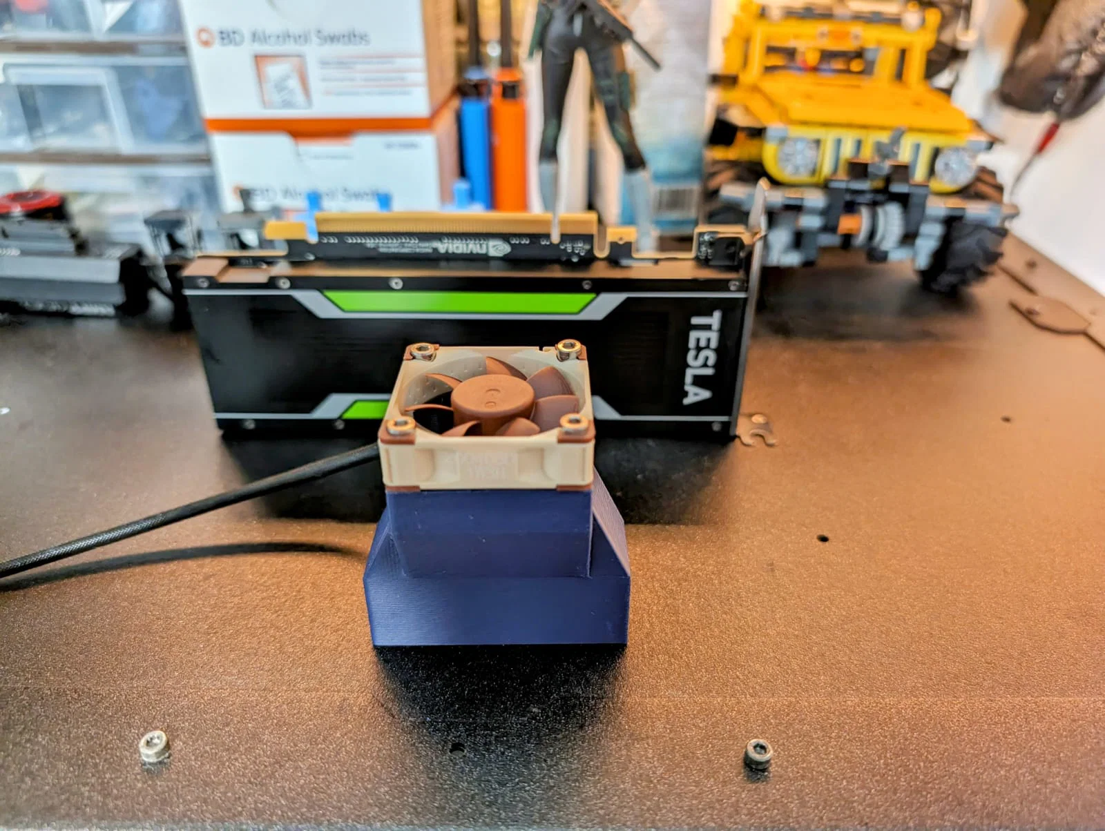 Air Duct Attachment tùy biến cho Nvidia Tesla P4, gắn quạt 40mm ở đầu GPU để tăng airflow qua silicon, giúp giảm nhiệt độ vận hành. Thiết kế theo Noctua PVM 4x10, khuyến nghị in ASA/ABS để chịu nhiệt tốt.