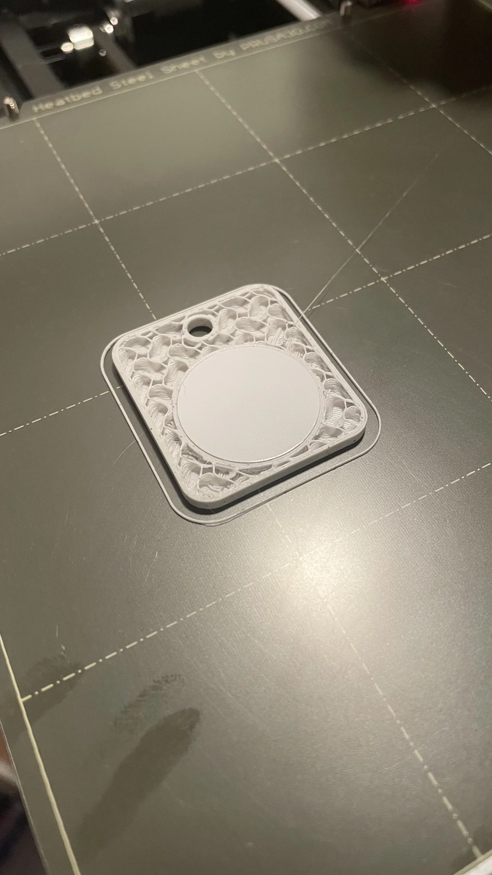 Cái NFC tag thì đường kính 25mm và dày khoảng 1mm. Phần hốc trong model 3D có tolerance 0.1mm. Với vài setting thì có thể sẽ hơi căng, nhưng với bản in của mình thì vừa khá ngon.