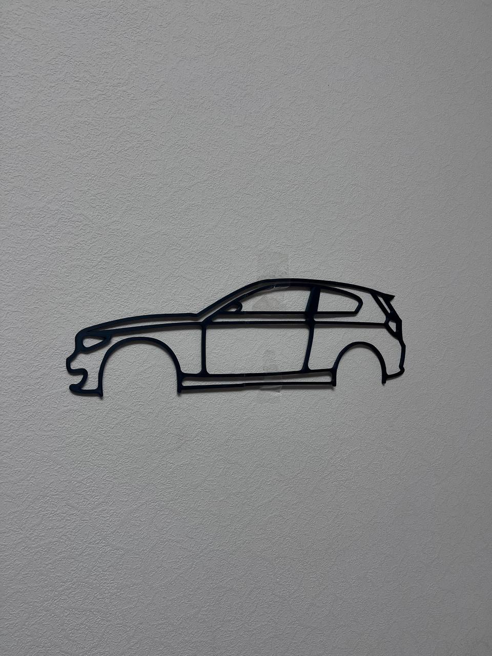 Silhouette chiếc BMW E81 bản 3 cửa để làm wall decoration cho garage. Có bản lớn khoảng 600×180mm, hoặc scale nhỏ (trên 75mm theo trục X) để làm móc khóa. Treo tường chỉ để chụp hình minh họa.