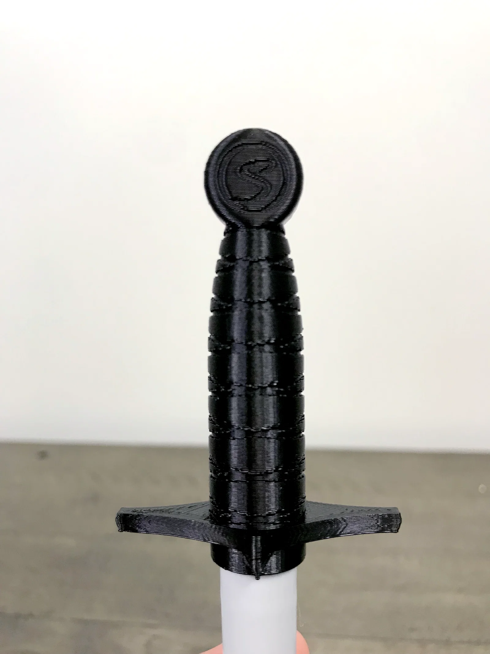 Bản mod nắp cho Sharpie Fine Point: một “chuôi kiếm” trùm lên nắp gốc, giữ nguyên o-ring/seal để bút không bị khô. In nhanh, dễ lắp, có thể tô màu chuôi bằng chính Sharpie của bạn.