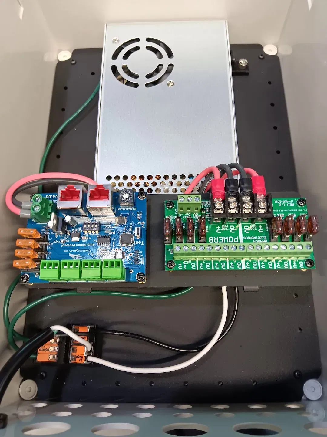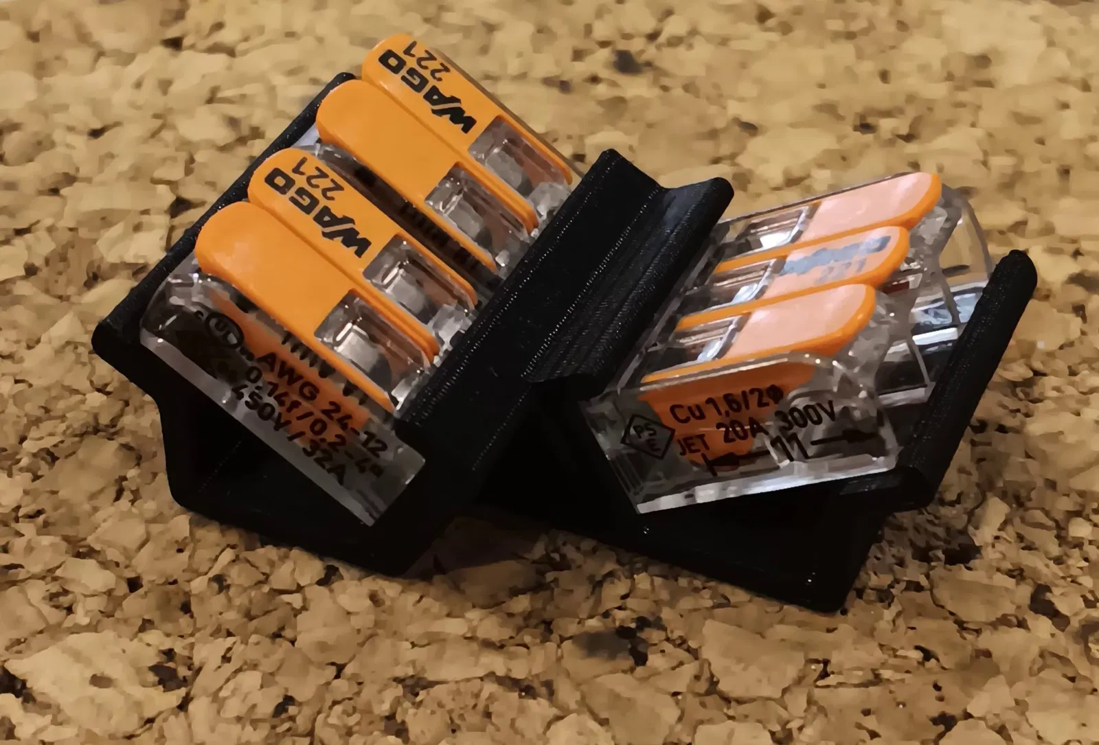 Cuối cùng, tôi thấy hình chữ V không tiện lợi, khi nối dây từ trên xuống, rất dễ để lực kéo của dây làm lỏng đầu nối Wago. Tôi vẫn coi đây là một kết nối dây lỏng hữu ích (và trông đẹp), nhưng tôi sử dụng để đưa dây nguồn chính vào. Sử dụng vít m3 để gắn đủ Wagos nhằm đưa nguồn điện một pha vào hộp dự án. Các bộ kết nối ba chiều bao phủ việc kết nối khung với mặt đất. Có một sơ đồ lỗ gắn trong các bức ảnh. Ngoài ra, nó thực sự trông rất đẹp. Nếu sử dụng cái này với điện áp hoặc dòng điện cao, bạn có thể nên in nó bằng một thứ gì đó như
