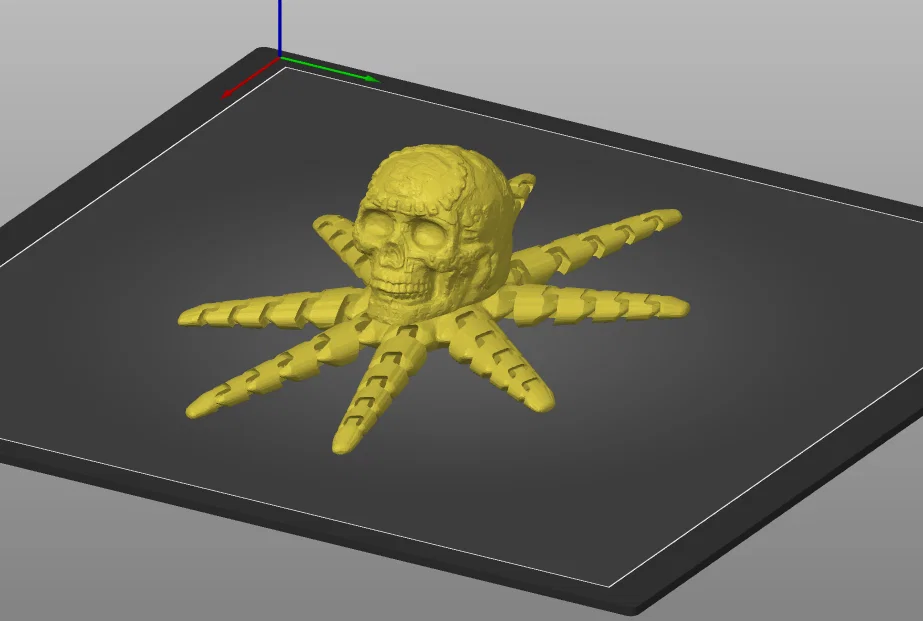 Mẫu bạch tuộc articulated kết hợp Aztec Death Whistle, vừa nghịch fidget vừa hú siêu to. Khuyến nghị in không cần supports; nếu bám bed kém thì vệ sinh mặt bàn in hoặc dùng keo, ưu tiên PEI build plate.