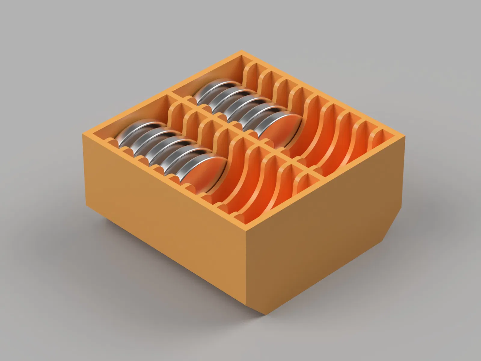 Giá đỡ pin đơn giản để lưu trữ hai mươi (20) pin đồng CR1220, thường được sử dụng trong đèn pin móc khóa, RTC máy ảnh kỹ thuật số và các thiết bị điện tử nhỏ khác.