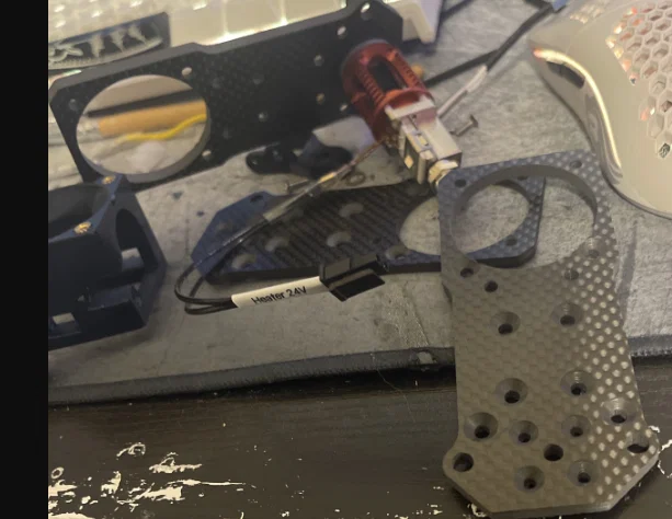 Về cơ bản thì mình chỉ hạ đường đi của belt của V-Core 4 xuống để khớp với đường belt của V-Core 3.1. Mình cũng đã kèm theo file .step cho tấm Carbon Fiber (CF) mà mình đang dùng với Dragon Ace. Nếu bạn dùng enclosure, nhớ đặt CF với loại epoxy được rated cho nhiệt độ cao hơn. Nếu dùng tấm CF này thì bạn sẽ cần clinching nuts.