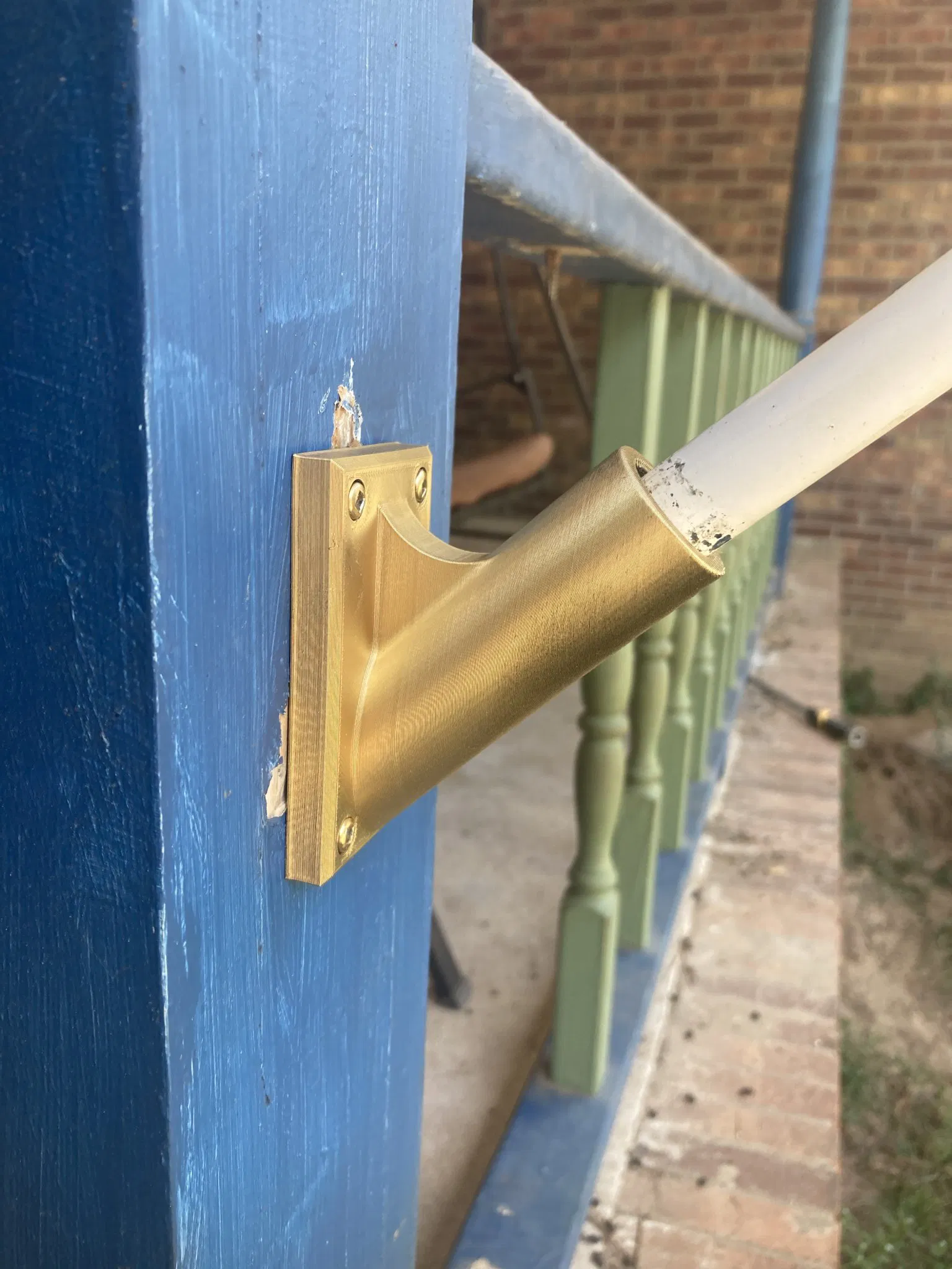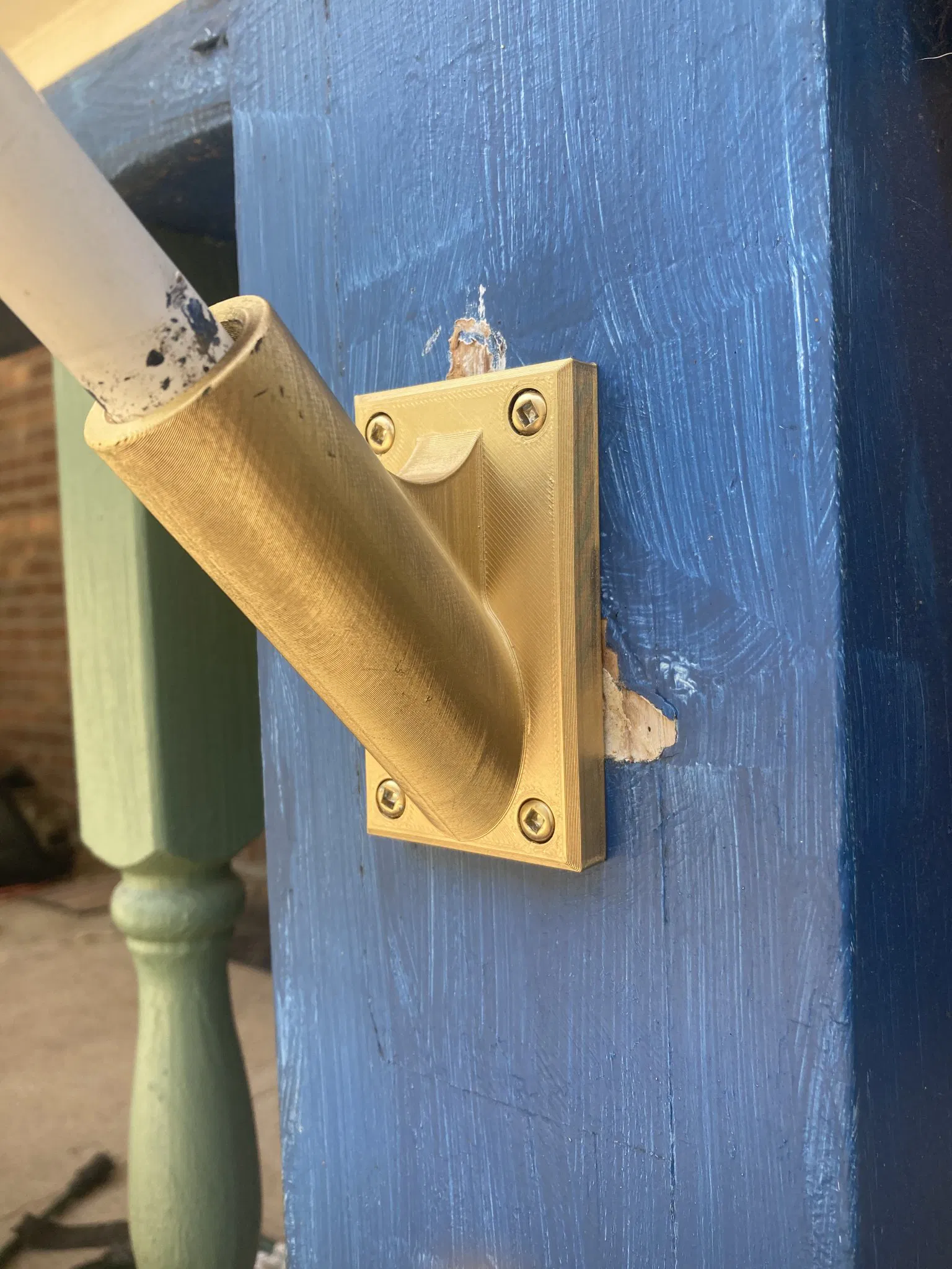 Trong suốt những năm qua, giá đỡ kim loại bị cong để giữ cờ của tôi đã bắt đầu bị biến dạng và thường xuyên làm rơi cờ. Nó cũng bắt đầu bị chùng khi ở vị trí. Chắc chắn là không ổn, vì vậy tôi đã đến cad. Phiên bản 1 có lỗ 25mm và phiên bản 2 có lỗ khoảng 21mm. Tôi đã sử dụng vít Kreg jig để gắn nó vào cột nhưng phần chèn có đường kính 8mm, vì vậy bất cứ thứ gì cũng có thể hoạt động. Góc của cột là 45 độ. Tôi hy vọng mô hình này có thể giúp ai đó nhiều như nó đã giúp tôi.