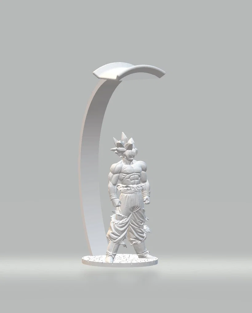 Mẫu giá đỡ tai nghe có tượng Goku ở trạng thái Ultra Instinct (Dragon Ball Super). Thiết kế gồm 2 phần, có phiên bản modular cho một số máy in; phần tựa tai nghe lỏng để chỉnh góc và thường cần dán keo.