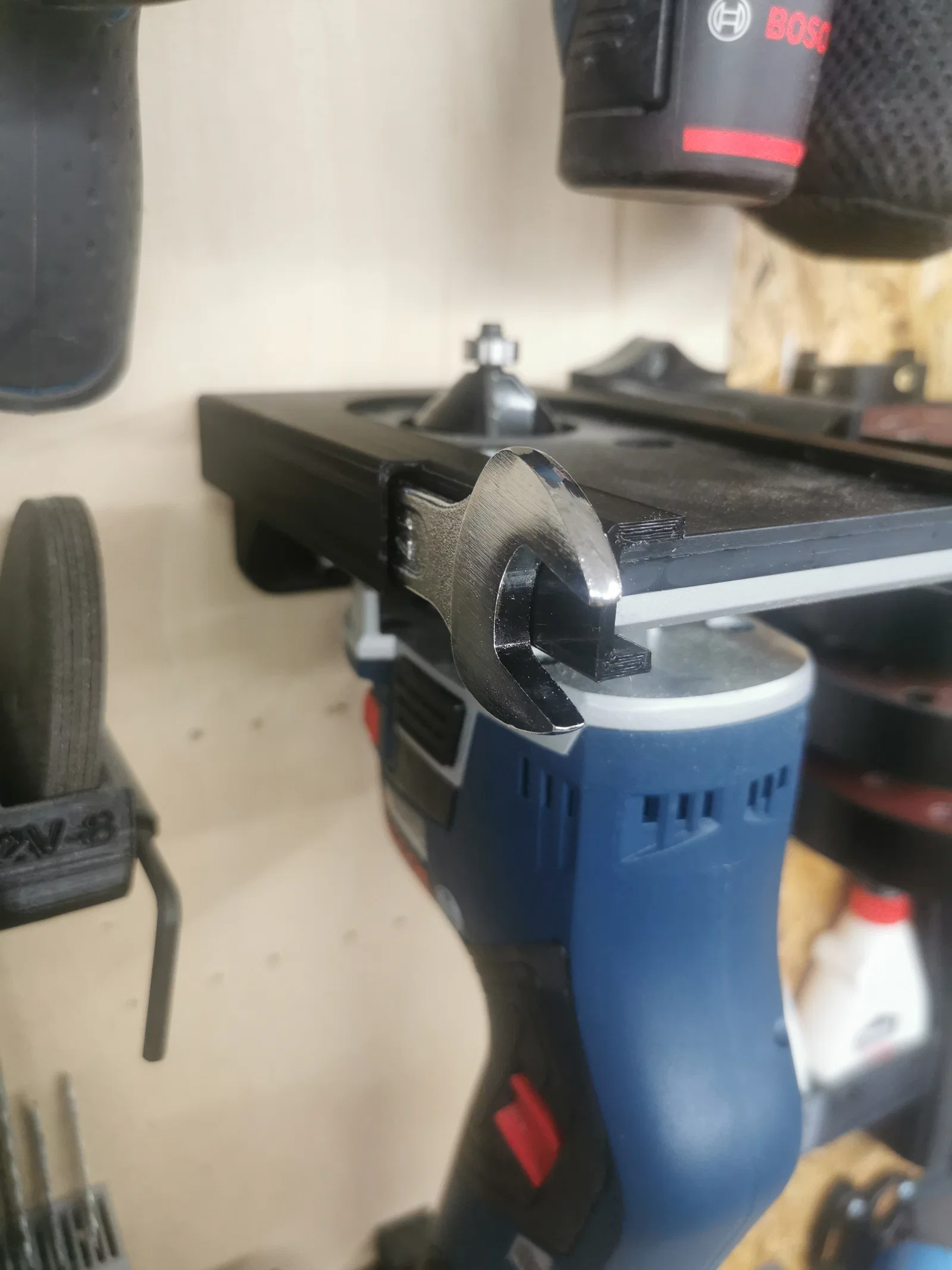 Giá treo tường cho máy phay cạnh Bosch GKF 12V tích hợp gài cờ-lê