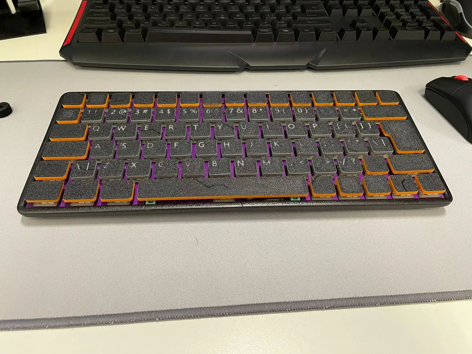 Tôi đã làm các keycaps có nhãn 0.3mm rỗng. Tôi in lớp đầu tiên bằng một màu và sau đó tôi thay đổi sang màu khác để tạo sự tương phản làm nổi bật các ký tự.