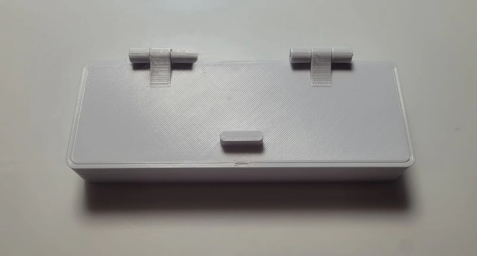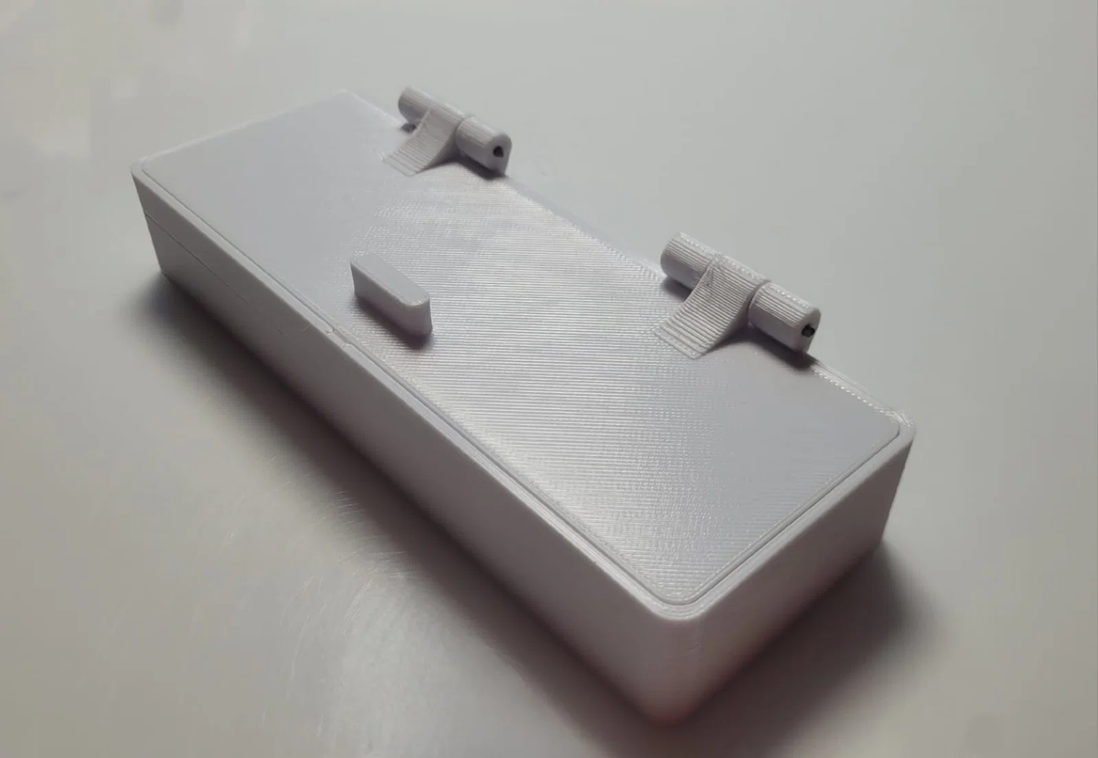 Hộp du lịch cho Gillette Fusion 5 với bản lề dùng filament: lắp xong chỉ cần luồn một đoạn filament 1.75 mm để bản lề vận hành. Thiết kế có thêm khay giữ pin cho máy cạo râu chạy điện.