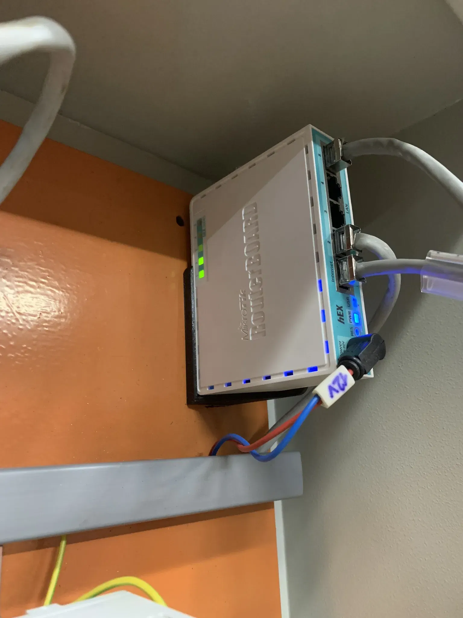 Một giá treo cho bộ định tuyến Mikro Tik Hex để gắn theo chiều dọc.