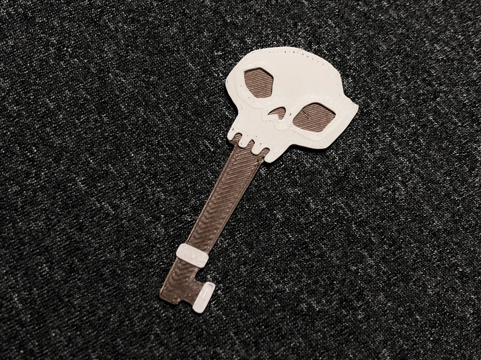 Mẫu Skeleton Key từ game DOORS (Roblox) cực dễ in: không cần supports, không cần raft/brim. Có thể tăng độ dày bằng cách scale theo trục Z và dùng Pause & color change để in nhiều màu mà không cần MMU/AMS.