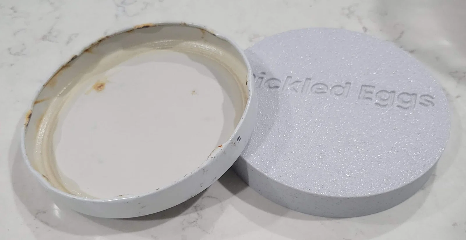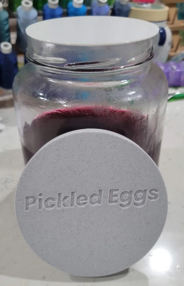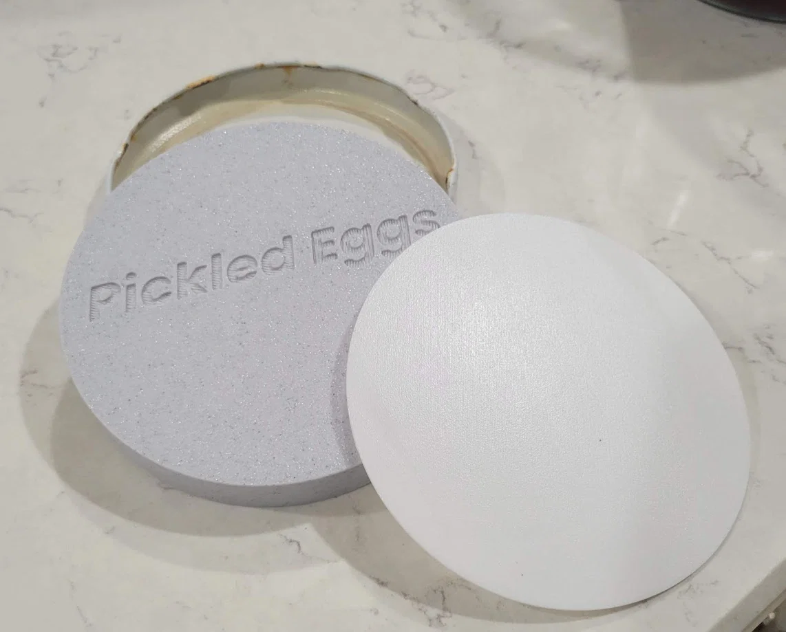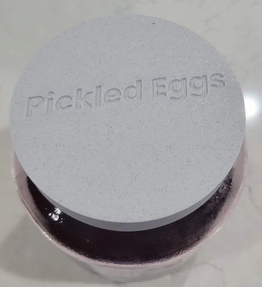 Nắp thay thế cho hũ nửa gallon dùng ngâm trứng và củ dền. Nắp đường kính trong 110mm, có 8 ngàm khóa vào ren hũ. In PETG; kèm gasket in TPU để giảm rò rỉ (có thể cần dày hơn chút).