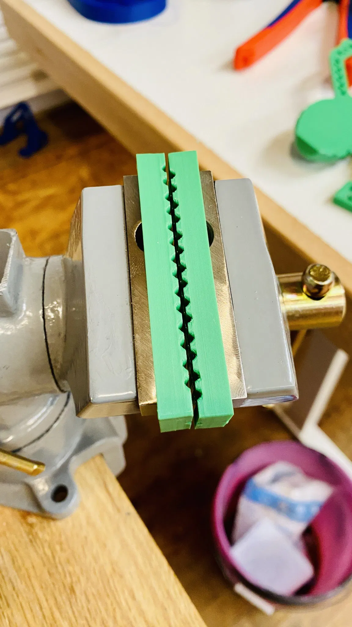 Như đã đề cập ở trên, những “máng mềm” này dành cho Harbor Freights “CENTRAL MACHINERY 2-1/2 in Table Swivel Vise”. Những máng này trượt qua các máng cứng ban đầu và cho phép bạn giữ các vật phẩm tinh xảo mà không làm trầy xước chúng. Các máng có thể có răng được căn chỉnh hoặc lệch tùy thuộc vào cách bạn lật chúng.