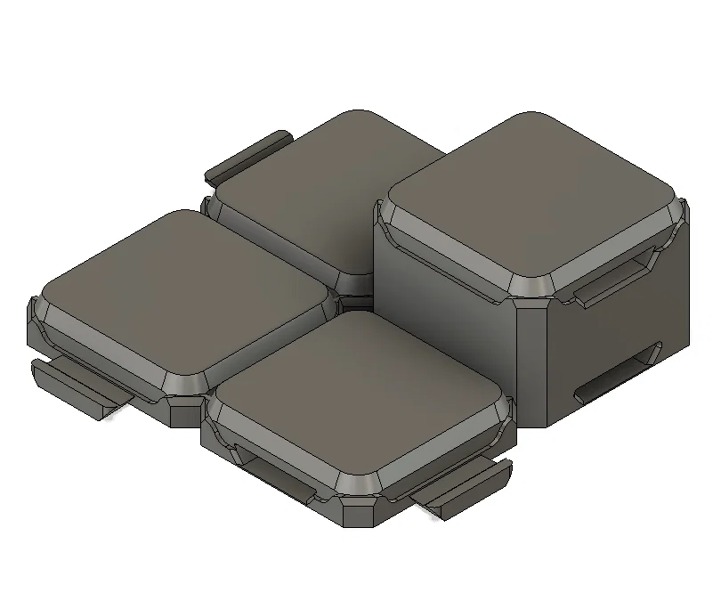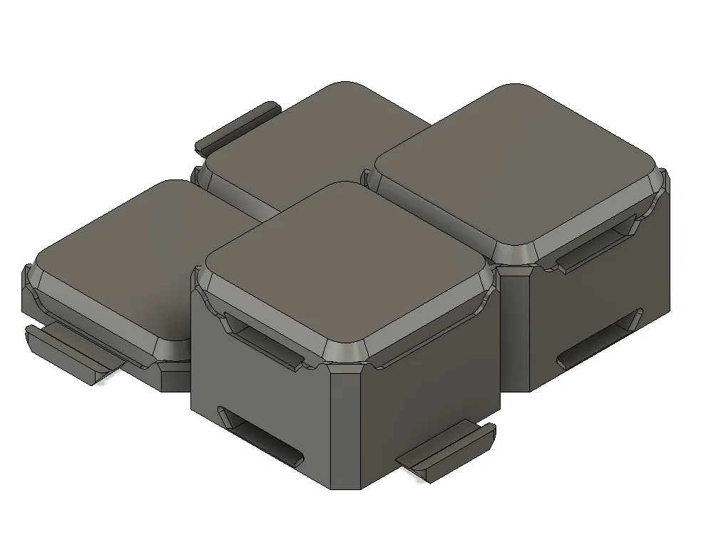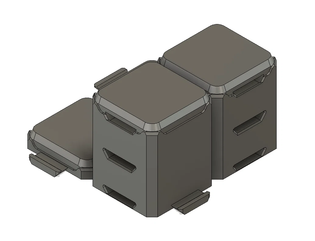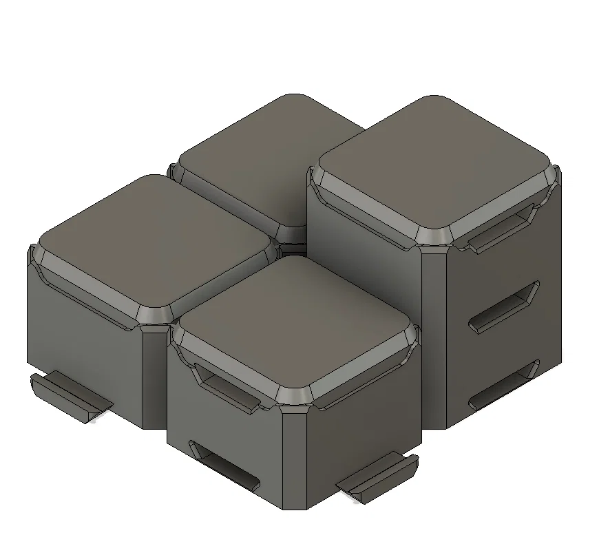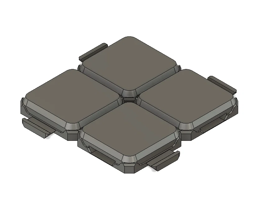 Các mảnh “raised cliff” (vách nâng) có thể khóa khớp với tile nền, nên bạn có thể kết hợp tất cả lại để làm map 3D. Với những khu vực nâng cao lớn, khỏi tốn hàng giờ in lại các tile cao hơn—chỉ cần dùng phần scaffolding để đỡ các vùng nâng là được!