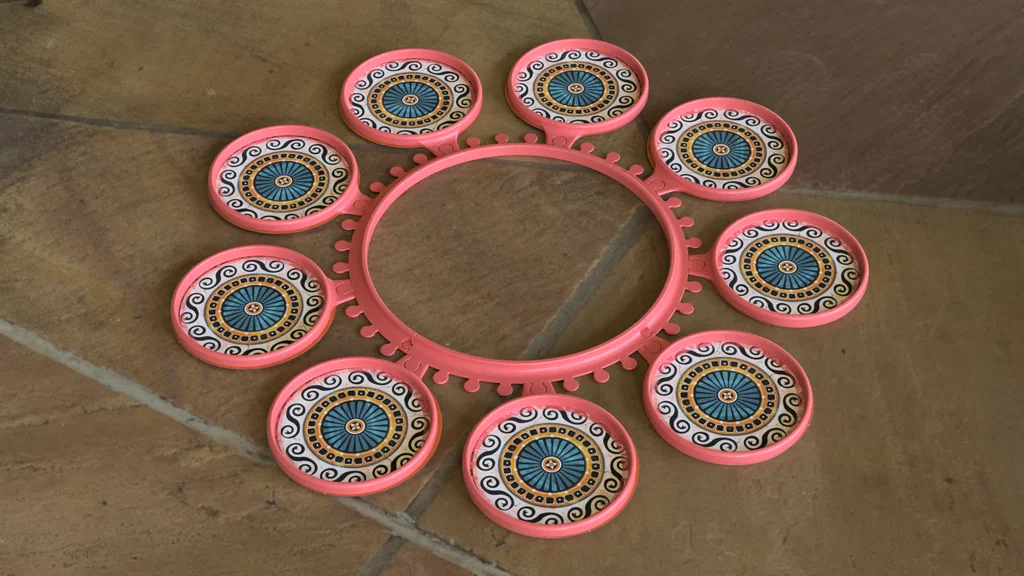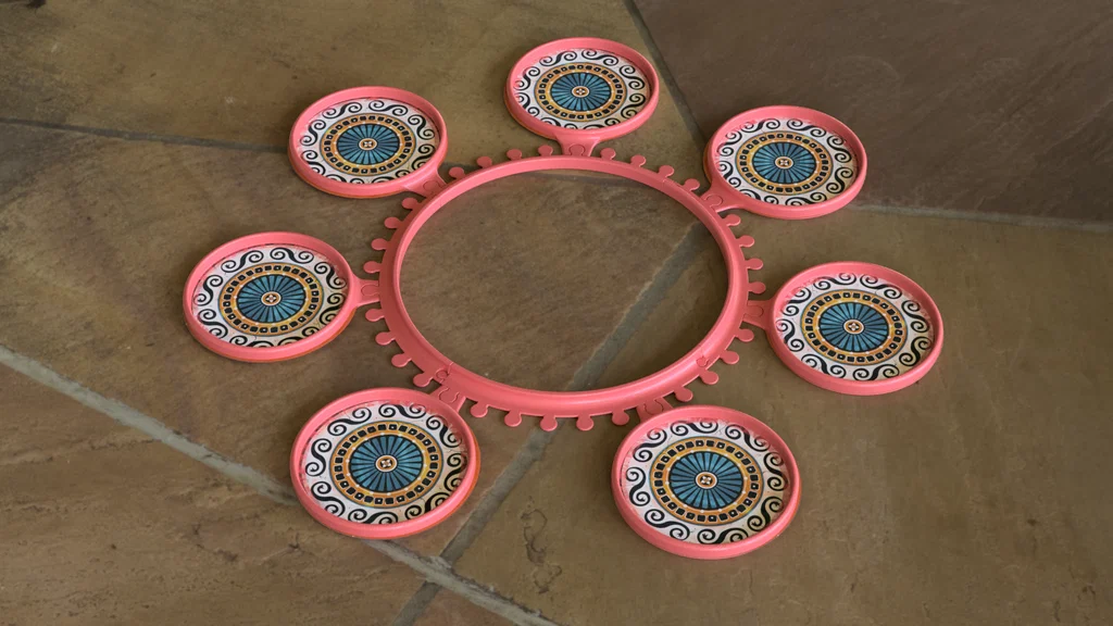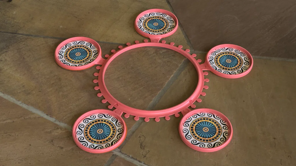 Bộ organizer cho các “factory” khi chơi Azul: giữ tiles đúng vị trí, nhìn gọn đẹp. Có Center Ring bản in liền hoặc bản split 4 mảnh bấm khớp, bản split cất vừa trong hộp game.