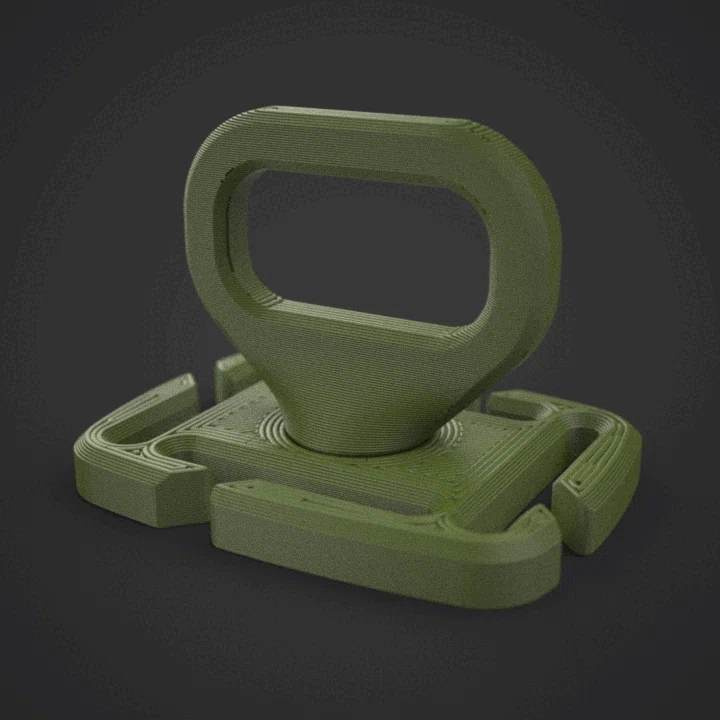 Phụ kiện in 3D dành cho gear tương thích MOLLE: kẹp dây size 1" với khoen xoay ở giữa, giúp gắn móc/đồ linh hoạt và xoay trở dễ dàng khi di chuyển. Khuyến nghị in PETG, ASA hoặc ABS.