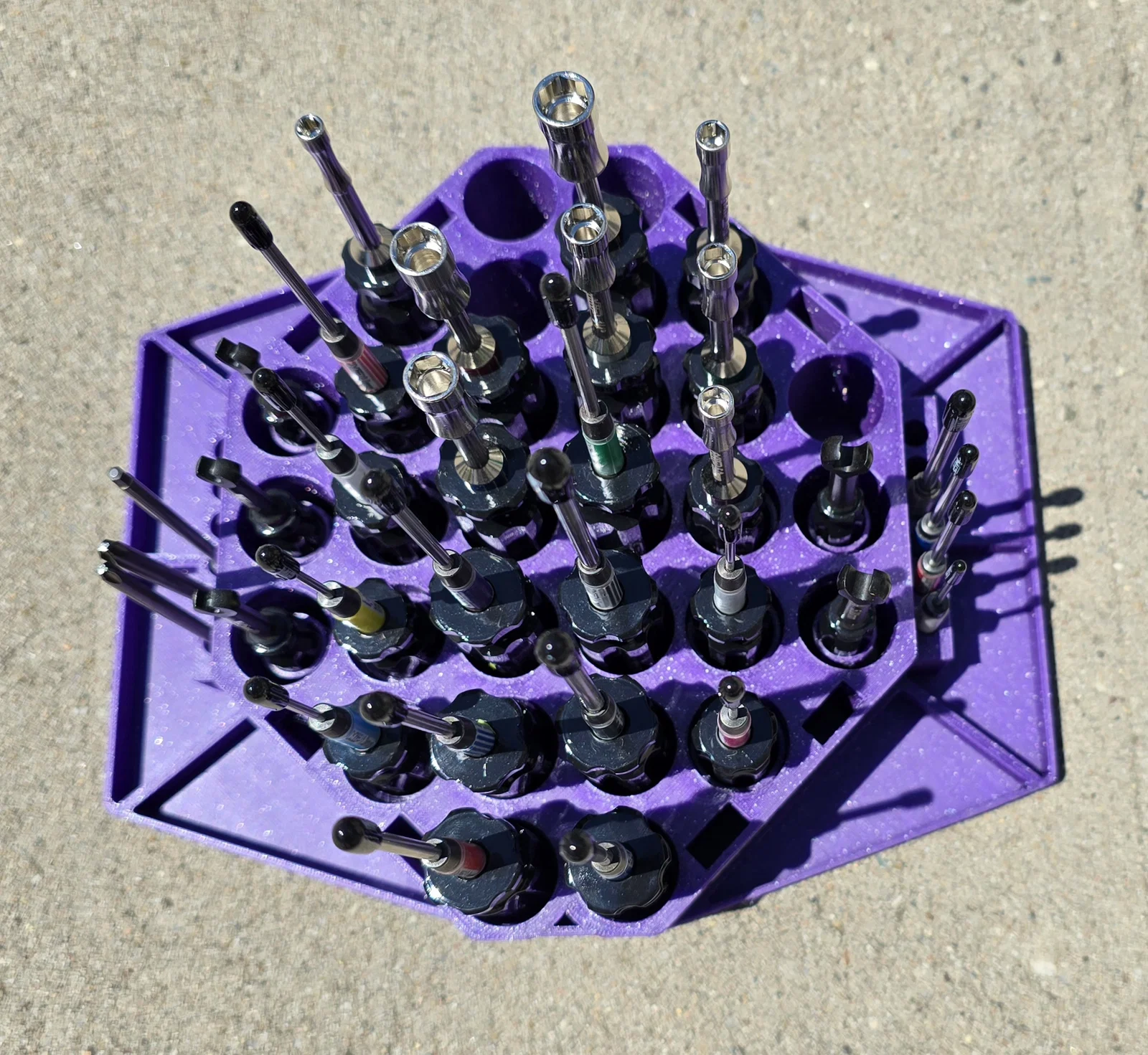 Bản remix stand dạng “deluxe” để cất bộ dụng cụ MIP Black Edition/Final Run và các tool cán cam. Kèm 2 “sleeves” (medium/small) giúp canh tool nằm giữa lỗ, có thể merge trong slicer hoặc dán sau.