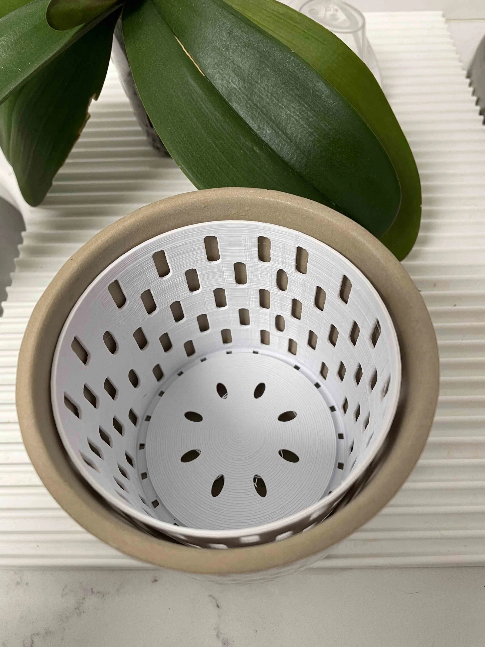 Mình làm cái insert này cho cây lan để dễ chuyển chậu. Tìm hoài không thấy mẫu insert nào ưng ý nên tự làm luôn. Mình in bằng PLA+ và canh size để vừa với chậu hoa của mình. File này cũng khá dễ scale để phù hợp với chậu của bạn.