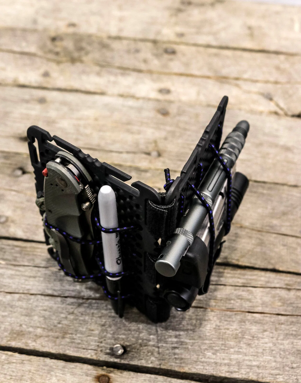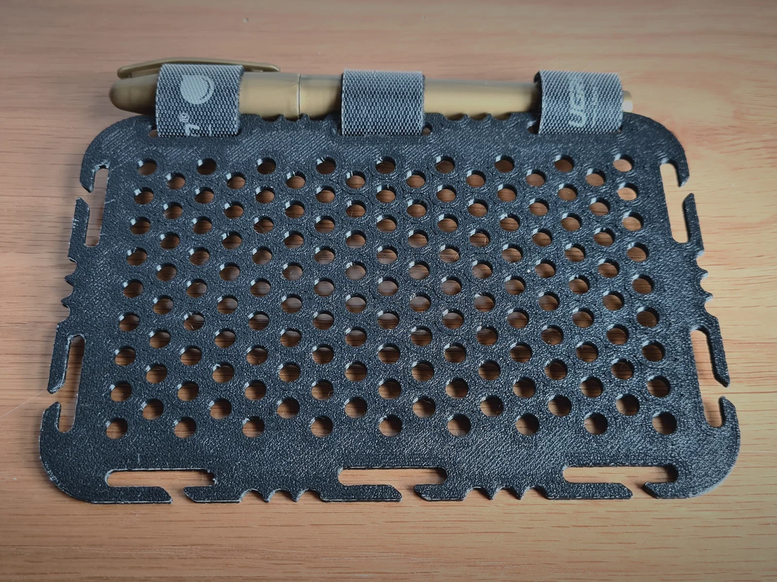 Rigid Molle Panel For Custom Organization V2.0 là bản remix để bạn custom cách sắp xếp đồ theo chuẩn MOLLE. Thiết kế bằng SOLIDWORKS, cắt lớp PrusaSlicer; in PLA+ với nozzle 0.4, layer 0.20, 3 perimeters, bed 60°C.