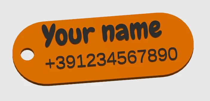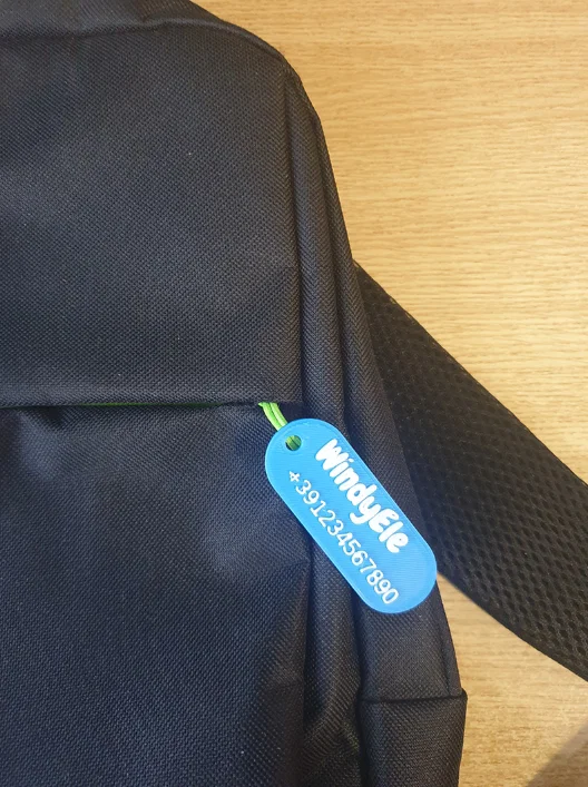 Mẫu thẻ tag cho balo/cặp học sinh có thể tùy biến tên và số điện thoại bằng openscad. Chỉ cần chỉnh file .scad, chọn font/chiều dài tag theo ý, rồi in face up và đổi filament để nổi chữ.