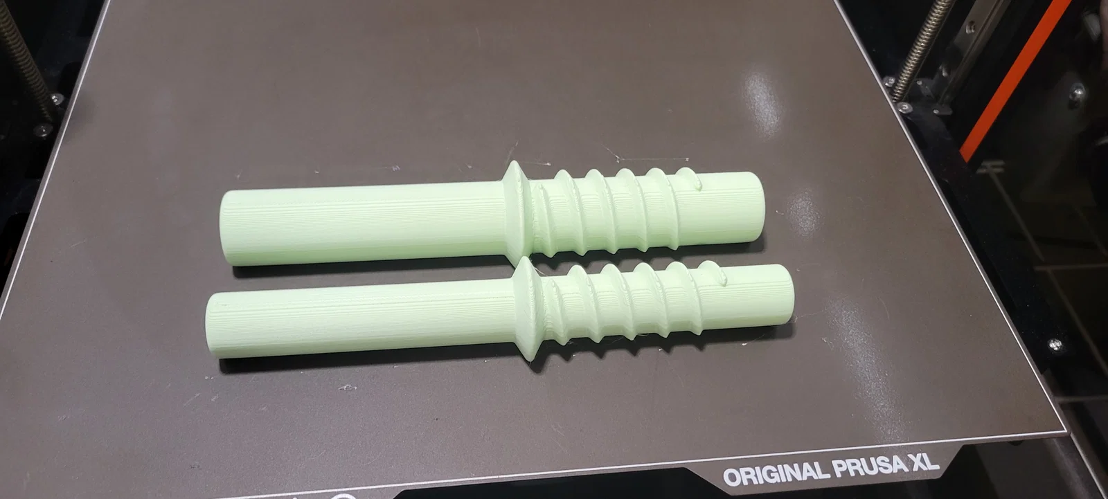 Khi mình làm bộ nunchucks từ pool noodle, mình nhận ra đây có thể là một cách hay để in phần handle của pool noodle sword theo kiểu nằm phẳng, nhất là khi bạn đang lo vụ bed adhesion. In theo hướng này cũng có thể chắc hơn.