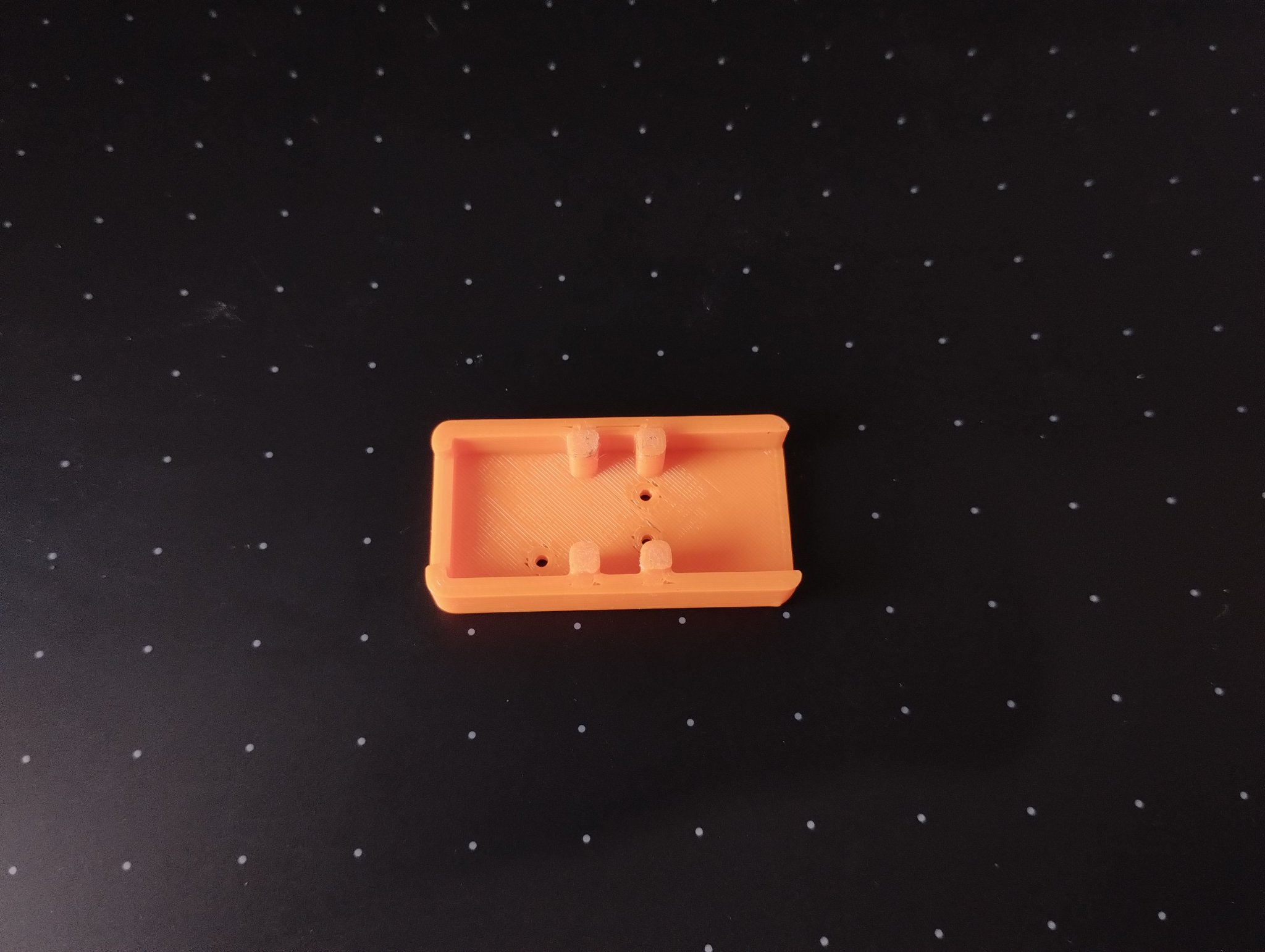 Đặt PCB giữa hai phần sao cho các chân được che phủ và bo mạch nằm trên các cột hỗ trợ. Dán hai phần lại với nhau bằng keo siêu dính.