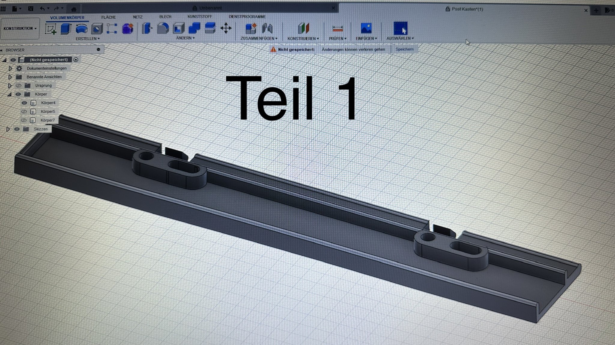 Hòm thư bị gãy! Hai thanh ray đã giữ hòm thư! Cả hai thanh ray đều bị vỡ hoàn toàn! Tôi đã vẽ thanh ray bằng Fusion 360! Và đã in bằng Prusa Mini của tôi! Thanh ray không vừa với bàn in của tôi! Vì vậy, tôi đã chia nó ra! Và sau khi in, tôi đã nối lại bằng keo dán siêu nhanh! và vặn chặt bằng ốc vít gốc. Tôi khuyên nên in các thanh ray bằng PETG! Để thử nghiệm, tôi đã in chúng bằng PLA.