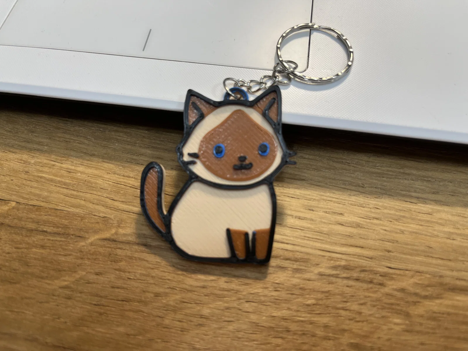 Mẫu móc khóa mèo Xiêm mắt xanh siêu dễ thương, kích thước 40x50mm, dày 3.2mm. Hướng dẫn đổi màu theo layer: Beige → Brown (#11) → Blue (#13) → Black (#15). Phù hợp làm keychain/keyring.