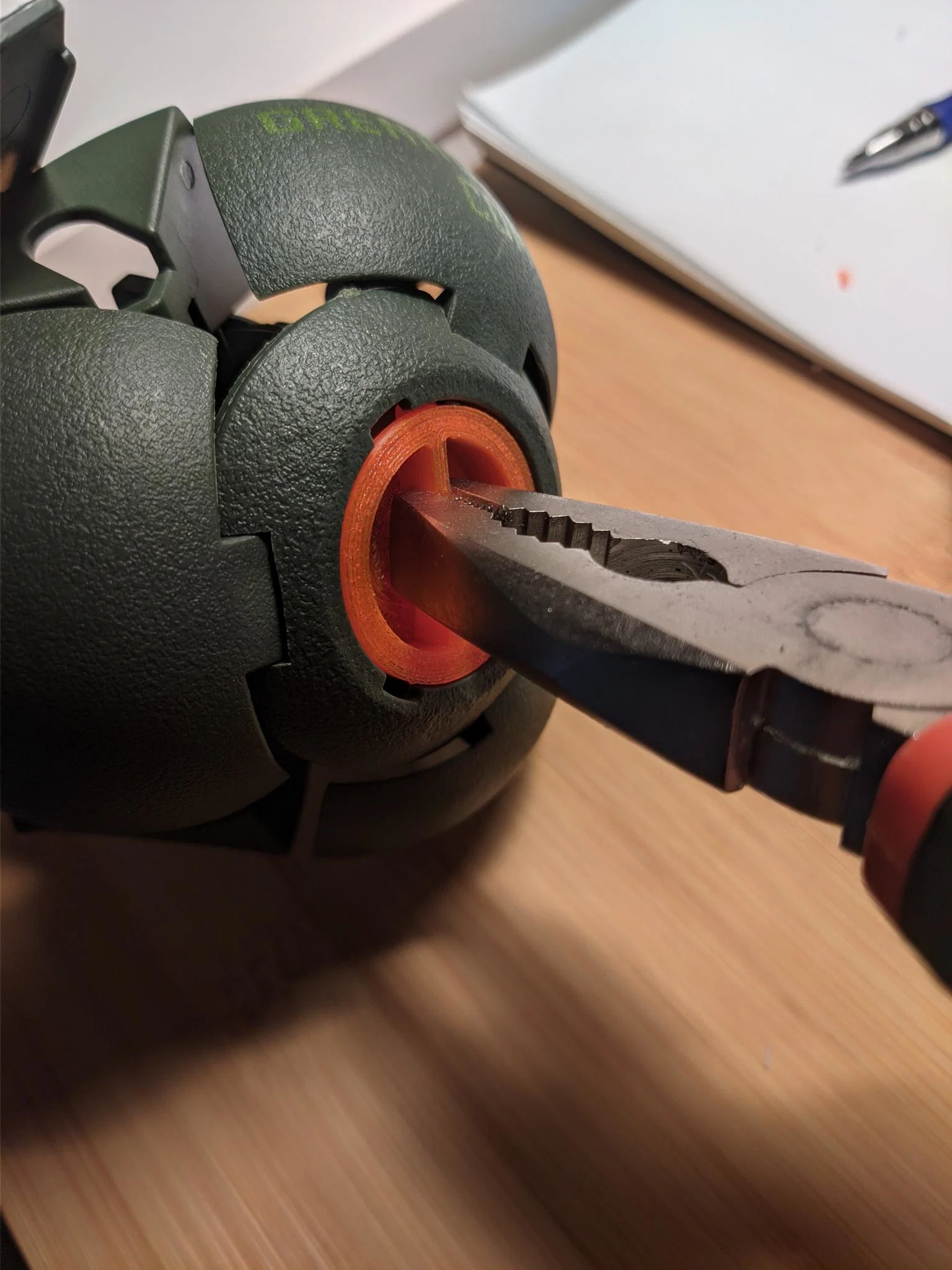 Lưu ý: Sau khi in xong, lúc đầu bạn có thể thấy hơi cứng khi vặn nắp vào bằng tay. Lấy kìm (xem hình) và dùng để vặn qua lại vài lần. Làm vài lần bằng kìm xong thì thường sẽ vặn tay bình thường được.