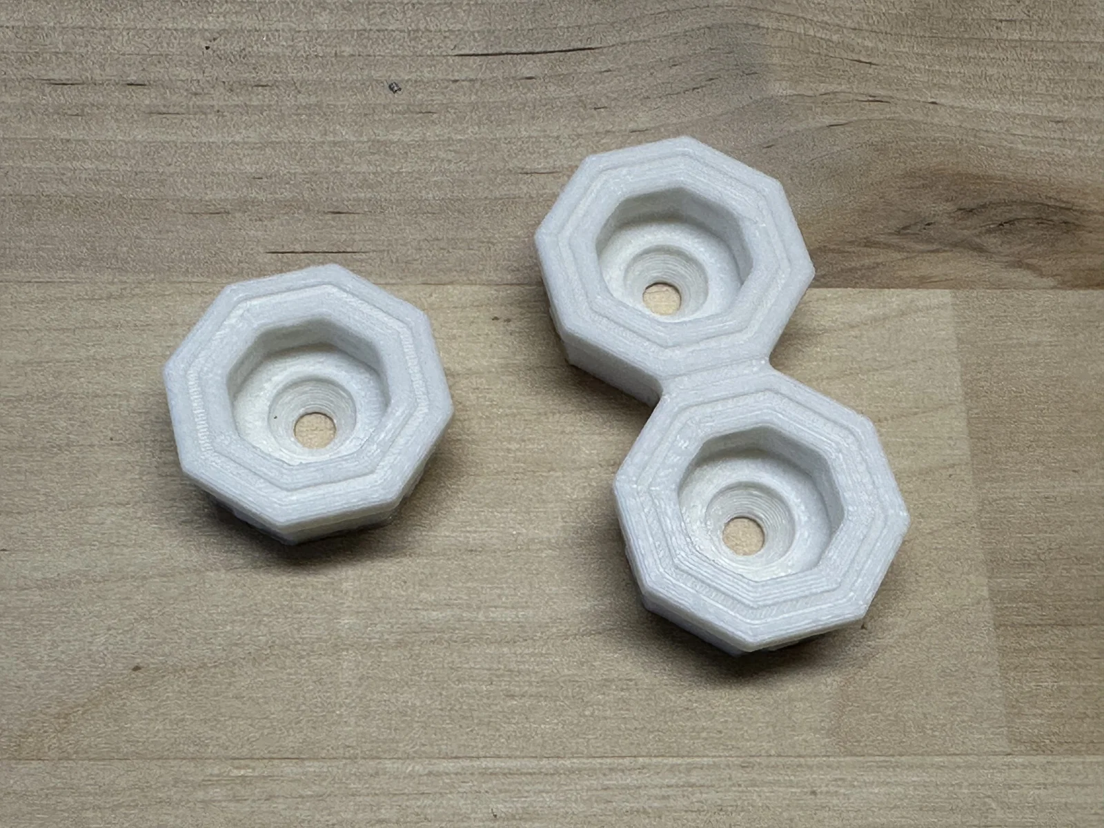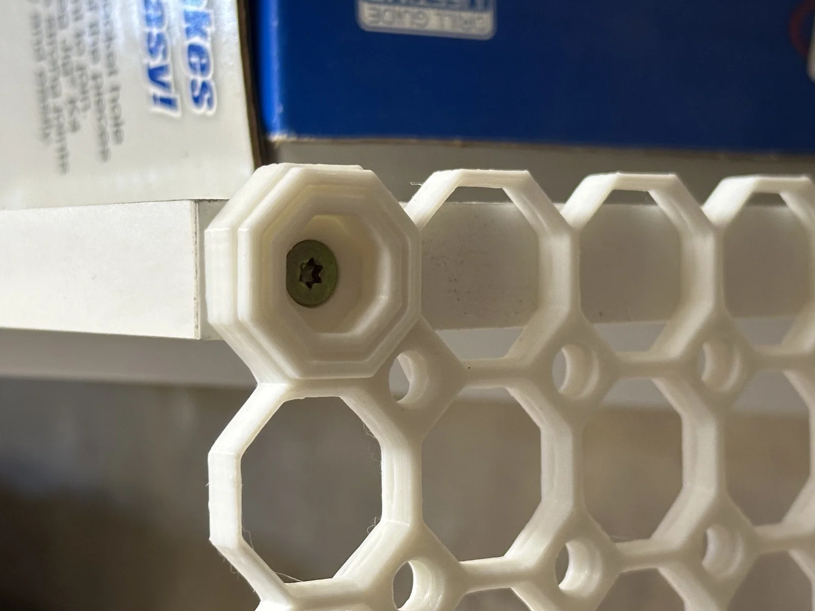 Mình có thử dùng các chi tiết bản gốc (phiên bản cũ), vốn được thiết kế để gắn tile trực tiếp lên tường, nhưng mấy cái ngàm/fastener dạng vặn bị xoay theo khi siết vít nên hoạt động không ổn. Vì vậy mình thiết kế bộ chi tiết này. Nó cũng chừa thêm một chút khoảng trống cho các thành phần dạng push-fit.